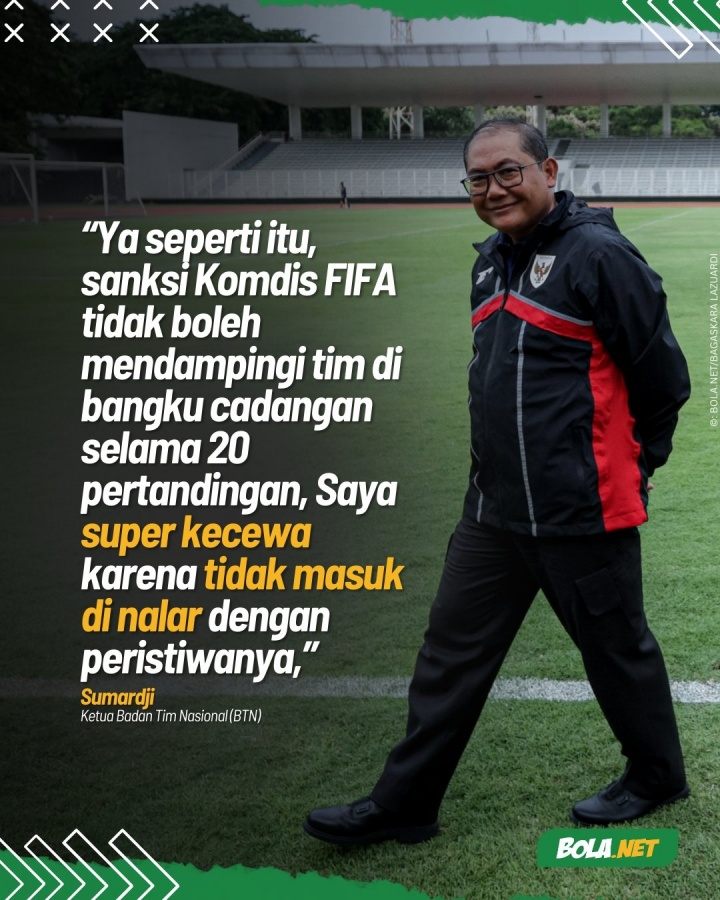 印尼媒体称,根据国际足联官方报告,苏马尔吉被认定存在严重违规,他从背后袭击了主裁马宁。在纪律听证会上,苏马尔吉没有否认对他的指控,也没有为自己辩护。