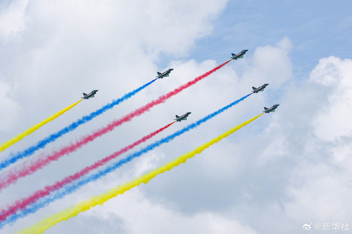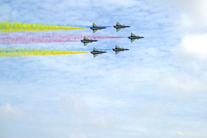 【查收!#中国战机帅气溢出屏幕#】2月4日,中国空军八一飞行表演队在第十届新加坡航展上进行飞行表演。戳图,#你要的航展炫酷大片来了#!(新华社)