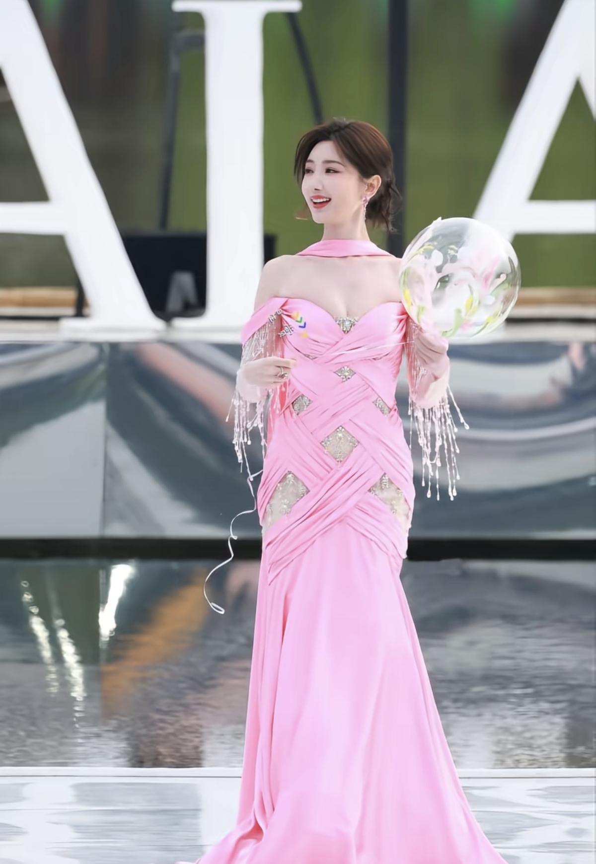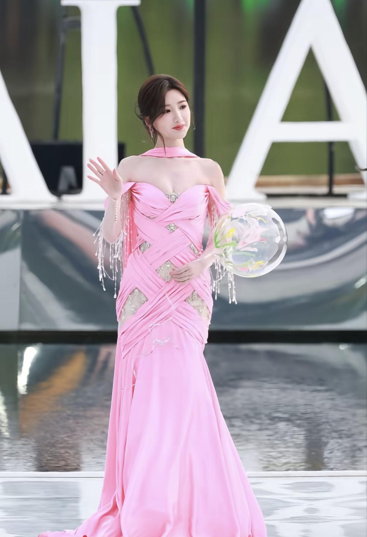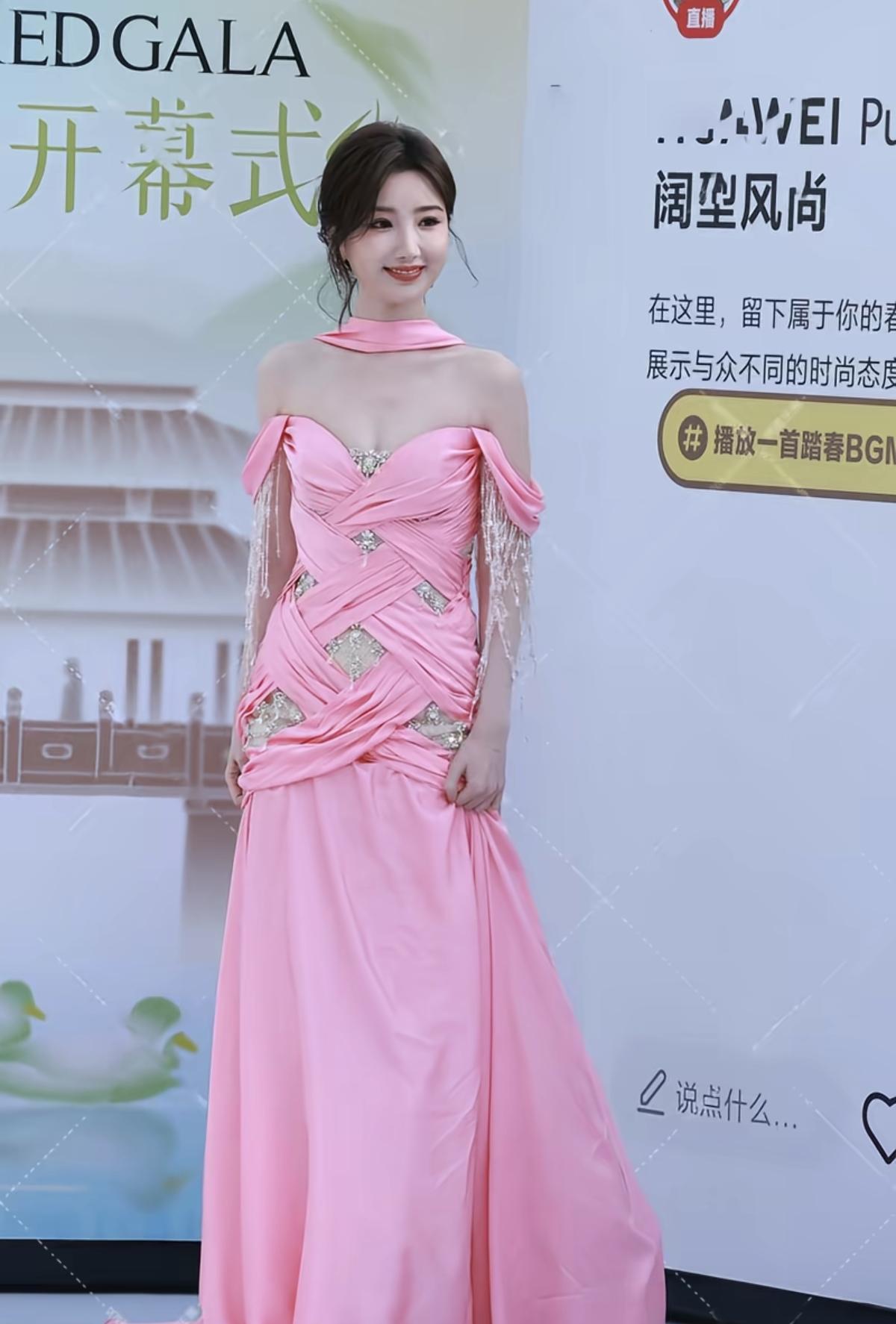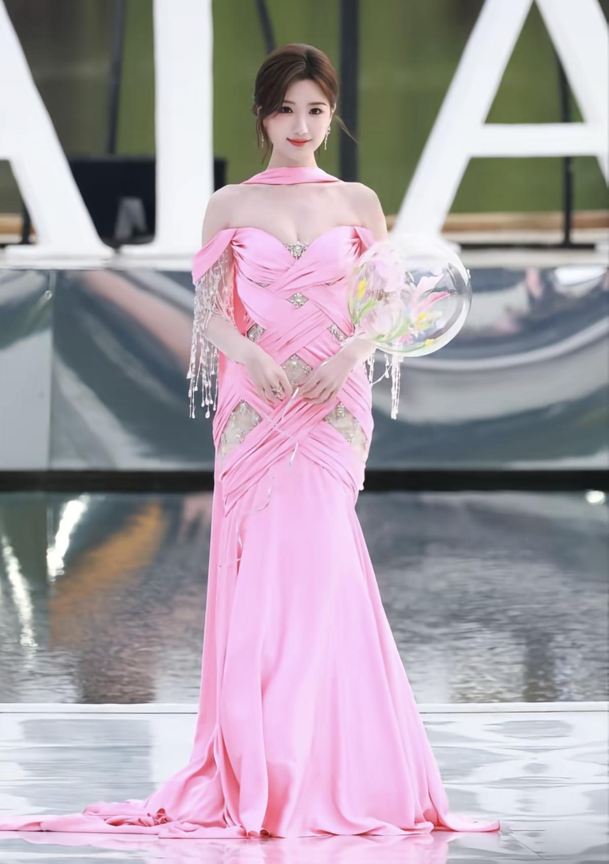 柔粉与流光的碰撞,毛晓彤用一袭露肩鱼尾礼服演绎优雅新可能[给力]交叉褶皱勾勒曲线