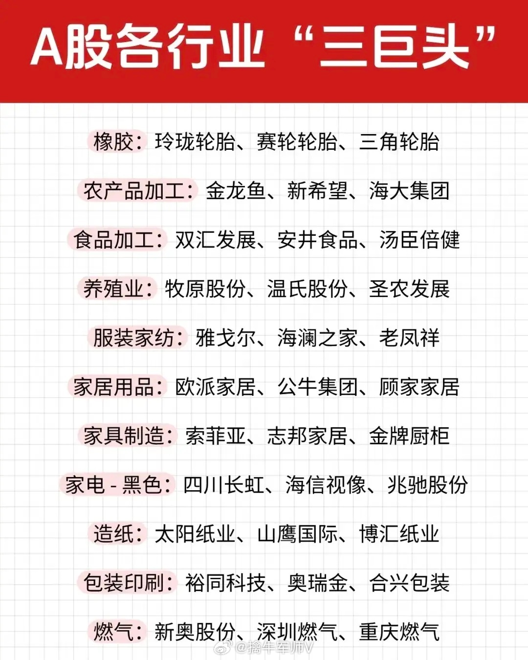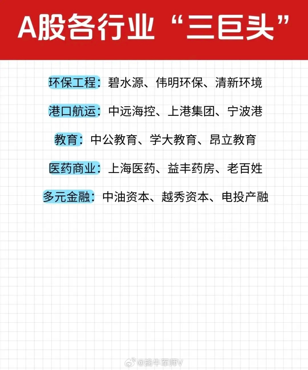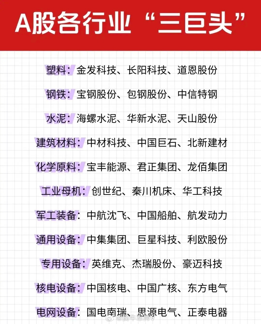 🔥A股各行业三巨头全梳理!覆盖新能源、消费、金融、制造等核心赛道精准锁定核心赛道龙头标的!科大讯飞:人工智能三大巨头之一,中文语音技术龙头,星火大模型国内领先。紫光股份:IT服务三大龙头之一,国内ICT基础设施龙头,交换机/路由器/AI服务器国内领先,覆盖网络、计算、存储、云计算、安全全栈。航发动力:军工概念核心龙头代表,国内唯一全谱系航空发动机总装龙头。中科曙光:AI算力三大龙头之一,国内算力基础设施龙头,国产算力核心供应商。……理财有风险入市需谨慎,资料取材网络仅供参考不能作为投资依据。
