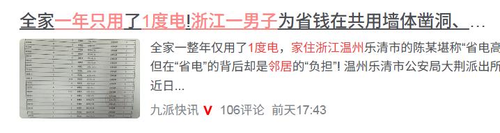 “兔子吃窝边草啦?”浙江温州,一男子看邻居常年不在家住,竟然在墙上抠了个洞,偷邻居家的电,他一年只用1度电,花0.54元,5年偷电8000度,一共4000多元,而邻居就惨了,每月家里不住人,竟然要缴100-300元电费,邻居发现不对劲,搬开客厅的柜子,她彻底傻眼了。 既非一月之期,亦非一日之短,而是整整365个日夜,分秒未曾打折,这漫长时光,实实在在。这大概是半根棒棒糖的价格,却支撑起了一个现代家庭一年的照明、取暖和生活运转。这不仅仅是数学上的奇迹,更是物理学上的“神迹”。 当这两张截然相反的账单摆在乐清大荆派出所民警倪李杰的案头时,所谓的“灵异事件”瞬间褪色,只剩下赤裸裸的人性算计。在这个世界上,能量是守恒的,如果不守恒,那一定是有人的良心出了缺口。 让我们把视线拉回那栋位于乐清农村的联排自建房。这种建筑结构在浙南很常见,两户人家共用一面承重墙,像连体婴一样紧密相依。对于大多数人来说,这面墙是邻里和睦的界碑。但对于陈某来说,这是一条通往“免费午餐”的秘密隧道。 从2021年开始,陈某就敏锐地捕捉到了邻居何女士的生活规律:常年定居市区,老宅仅仅是个摆设。于是,他操起工具,于那面共用墙体的隐秘之处,奋力开凿。不一会儿,一个碗口大小的洞便赫然显现。 他剥开了绝缘皮,将自家的电线像寄生虫一样缠绕在邻居的线路上。为了掩盖这个丑陋的伤疤,他极其精明地挪来了一个笨重的旧客厅柜子。柜子一挡,岁月静好。他在柜子前笑脸迎人,电流在柜子后源源不断地流入他家的电器。 这种“物理寄生”持续了整整五年。直到2024年1月下旬,何女士回乡探视,那几张违背常识的催缴单才让她彻底炸毛。她咨询电力公司无果,最终选择了报警。她不知道的是,这次报警不仅是为了钱,更是为了揭开墙后的那张脸。 警方的介入通常是理性的,但面对陈某的数据,连经验丰富的倪李杰都觉得这是一种侮辱智商的挑衅。一年用一度电?即便是在原始森林,偶尔充个手电筒也不止这个数。这种极端的“省电”数据,恰恰成了他最大的破绽。 倘若陈某能多些聪慧,哪怕每年缴纳百八十元电费,这场闹剧或许还能持续数年,不至于这么快就草草收场。但他太贪了,贪到连一块钱的掩护费都不舍得交。这种完美的“零成本”生存幻想,最终在他的贪婪面前崩塌。 2024年1月21日那个晚上,警方带着何女士走进了陈某的家。空气凝固在那一刻:众人合力挪开那个陈旧的柜子。随着柜体在地板上摩擦出的刺耳声响,墙上那个黑乎乎的洞口暴露在灯光下。 乱接的线路像一团纠结的毒蛇,连接着两个本该泾渭分明的家庭。何女士当时的反应很真实,气得浑身发抖,血压飙升。令她愤懑难平的,或许不只是那四千多元的电费损失,更有被熟人算计、如遭“吃干抹净”般的恶心之感,这种复杂滋味在心中翻涌,愤怒由此而生。 这五年里,陈某一共偷了约8000度电。按照商业价值计算,他“节省”了4000余元。为了这4000块钱,他不仅凿穿了墙壁,也凿穿了邻里间最基本的信任底线。 结局没有悬念,陈某因涉嫌盗窃罪被刑事拘留。这时候再看那张0.54元的账单,简直就是一张通往看守所的门票。他以为自己抓住了规则的漏洞,其实是把自己关进了法律的笼子。 在物理空间上,我们可能只隔着一层砖。但在心理空间上,那一层柜子的厚度,足以隔绝所有的良知与底线。 显而易见,陈某竟连兔子的狡黠聪慧都不及。他竭泽而渔,如同吃光窝边草的愚兔,最终将自身全然暴露于猎人的枪口之下,再无藏身之所。