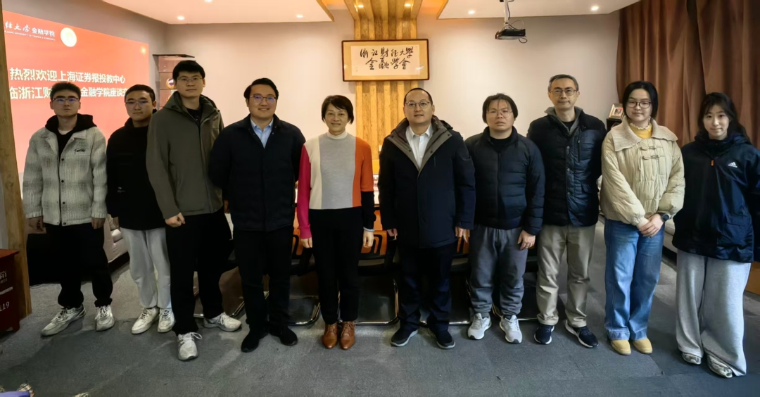 张勇军一行受到热烈欢迎,浙江财经大学金融学院党委书记朱旭明、副院长金骋路、投资系系主任徐峰、竞赛办主任徐函、金融学会会长严钰淇及学会多位骨干成员共同参与座谈交流。