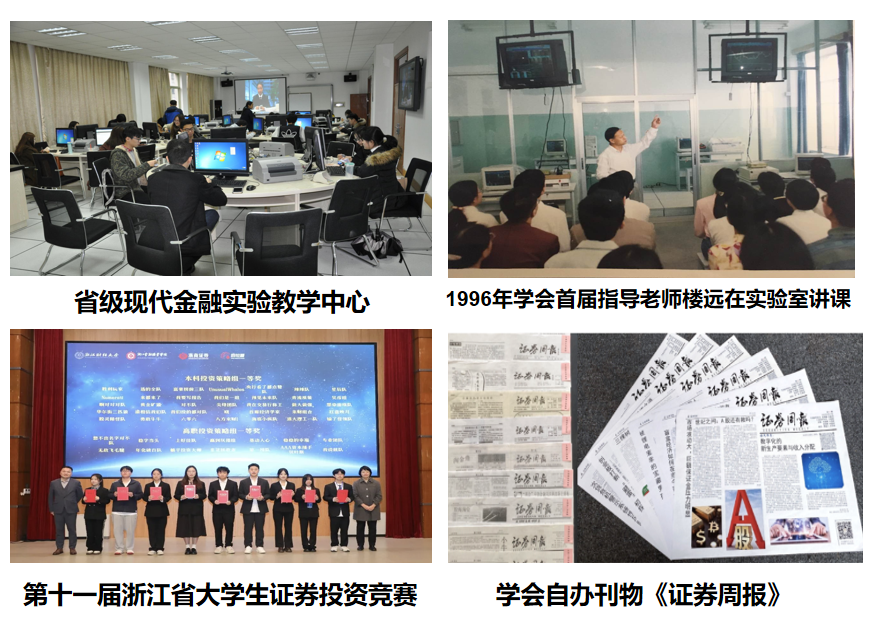 作为浙江财经大学历史最悠久、规模最大、影响力最广、学术科研能力最强的学生社团之一,金融学会曾获评“浙江省十佳学生社团”“浙江省优秀学生社团”“浙江省活力社团”等多项荣誉称号,累计会员超万名。其自办刊物《证券周报》自1997年起已连续发行数百期,内容涵盖市场点评、政策解读、投资策略等,近一年阅读量超万次,成为校园金融信息传播的重要阵地。由学会内部的模拟股市竞赛发展而来的浙江省大学生证券投资竞赛,作为浙江首个金融学科省级A类竞赛,现已成功举办11届,成为省内金融学子竞技交流、提升能力的重要平台。