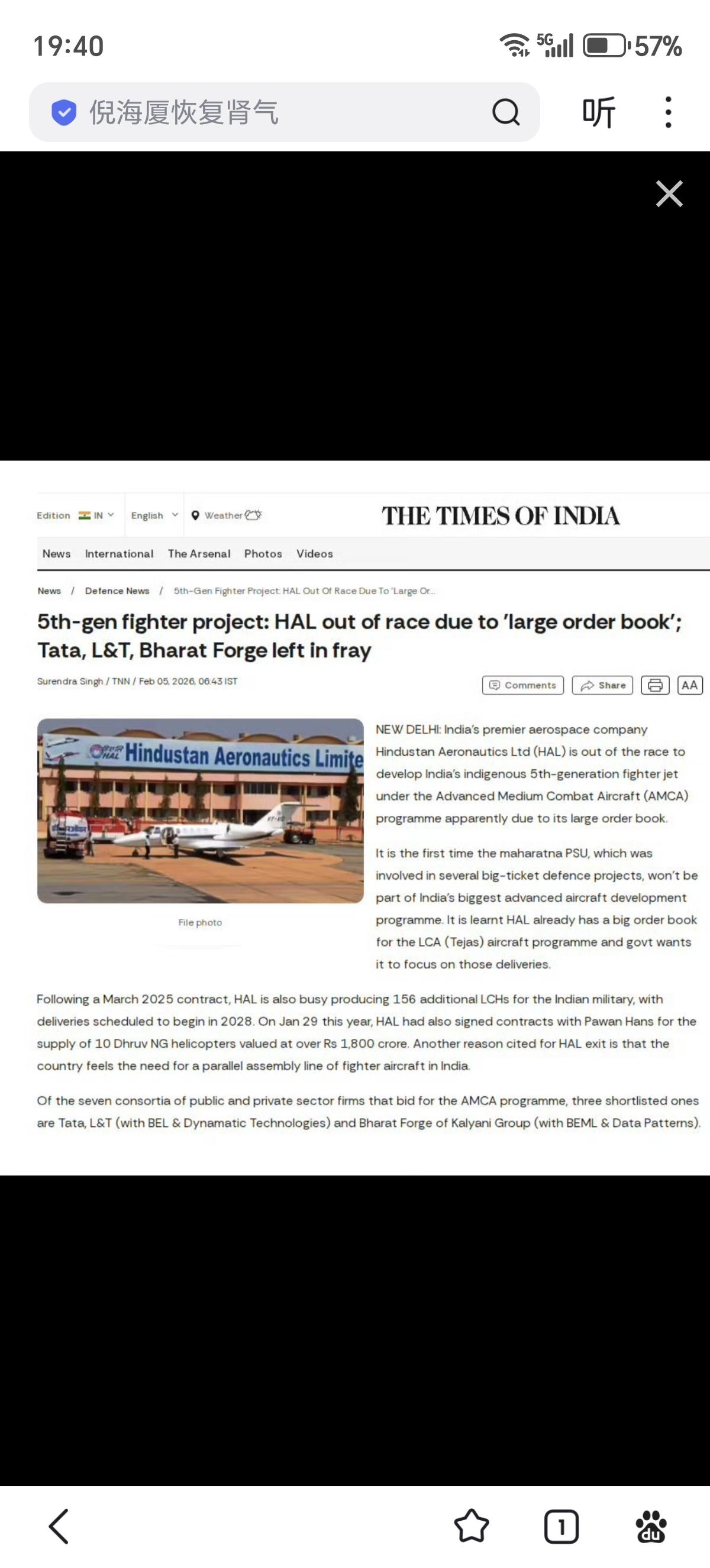 印度斯坦航空有限公司(HAL)在印度五代机项目“先进中型战斗机”(AMCA)项目的竞标中被淘汰。 消息人士称,HAL被开除机籍的原因是因为拖延。HAL与两家较小公司组成的联合体未能在技术评审阶段满足国防部规定的强制性标准。评审准则中包含对“未完成订单规模”的评估。HAL 目前积压了价值约2.5万亿卢比(约300亿美元)的订单(主要包括LCA光辉战斗机和各型直升机),这被认为限制了其承接AMCA这种高难度、长周期研发项目的能力。