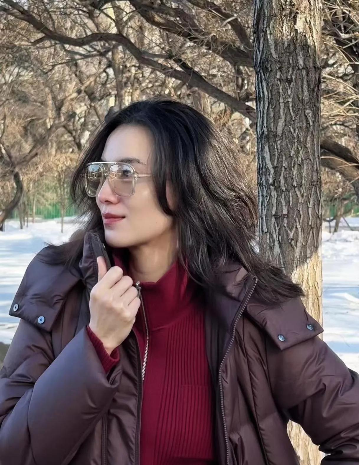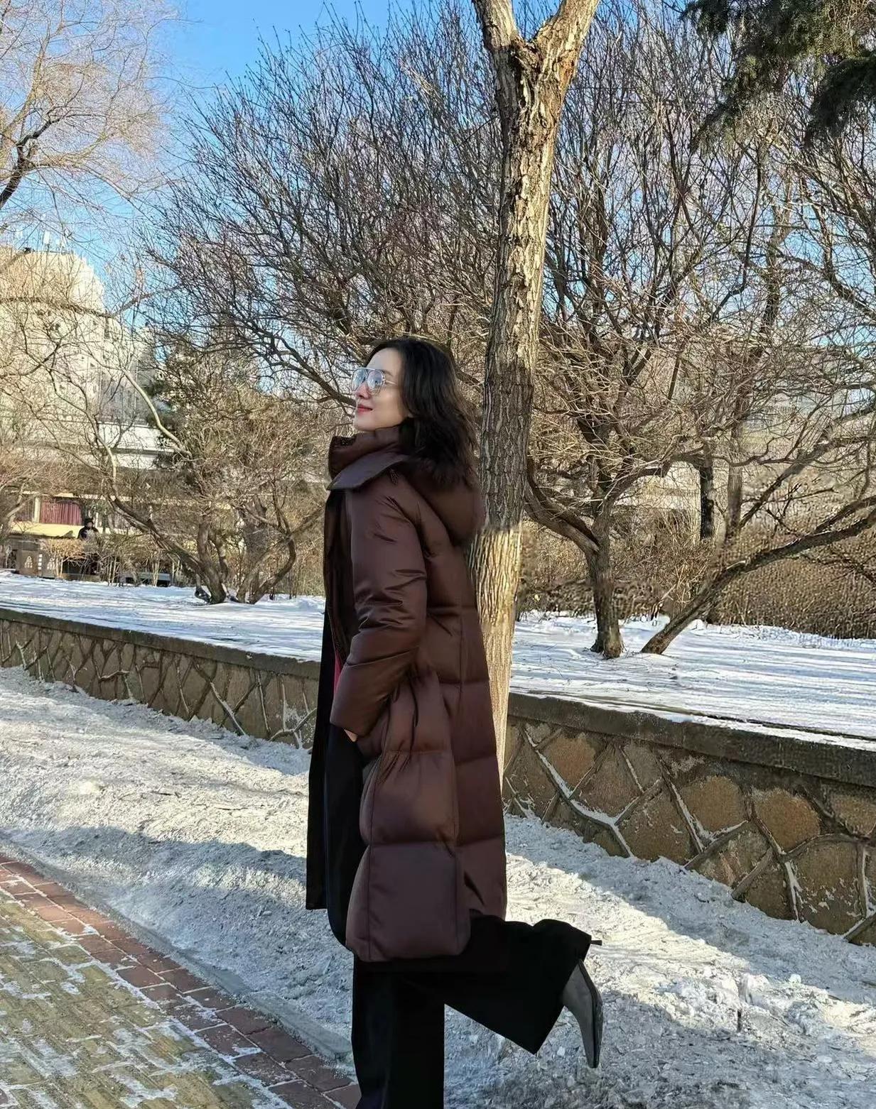 原来羽绒服还能这么穿! 宋佳把棕红配色玩明白了,保暖又洋气,美到想直接抄作业