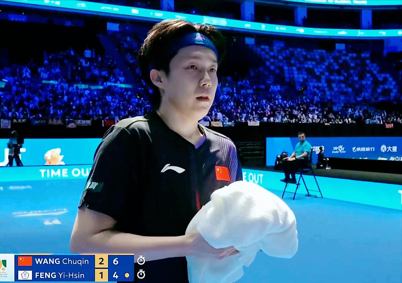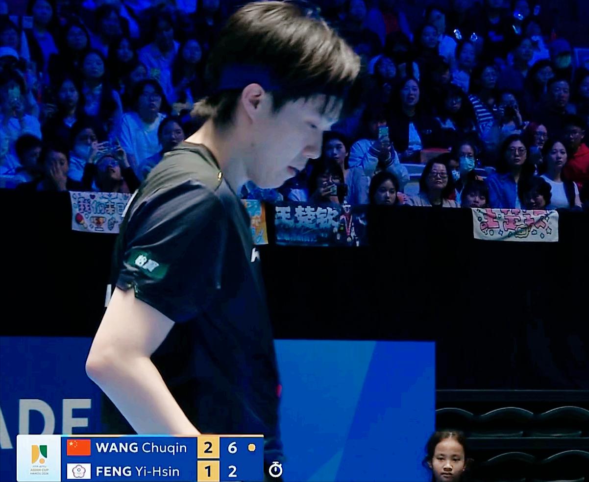 恭喜王楚钦!3:1拿下冯翊新 前两局王楚钦拿下后, 第三局冯翊新开始搏杀, 1