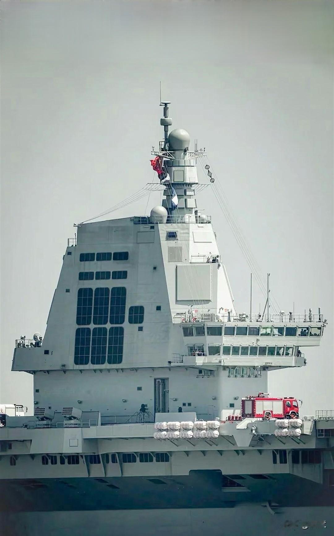 【福建舰几乎把常规动力航母舰岛设计到极致了】(图为福建舰舰岛与肯尼迪号舰岛同角度