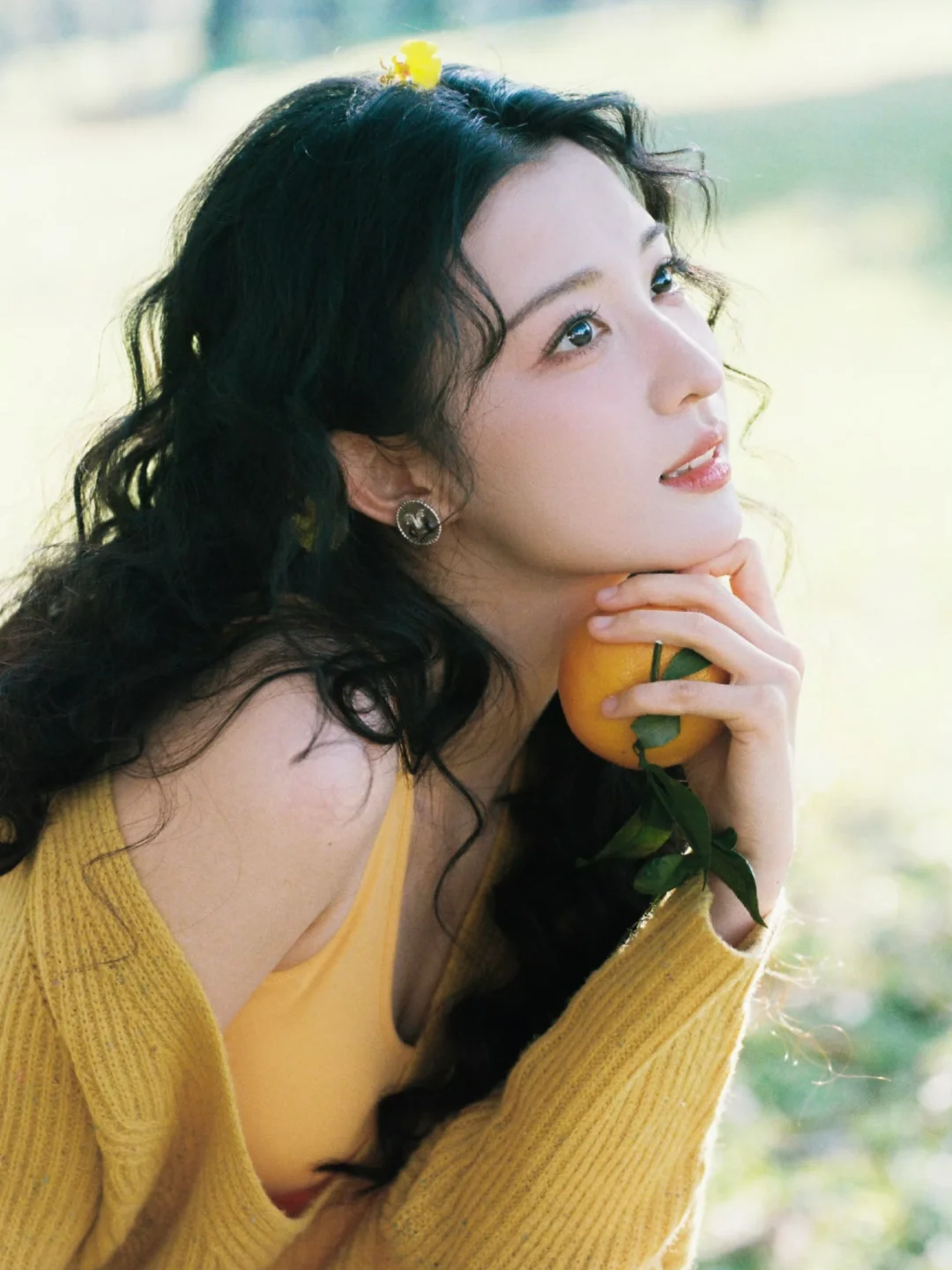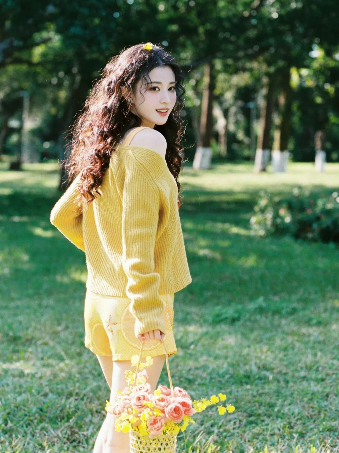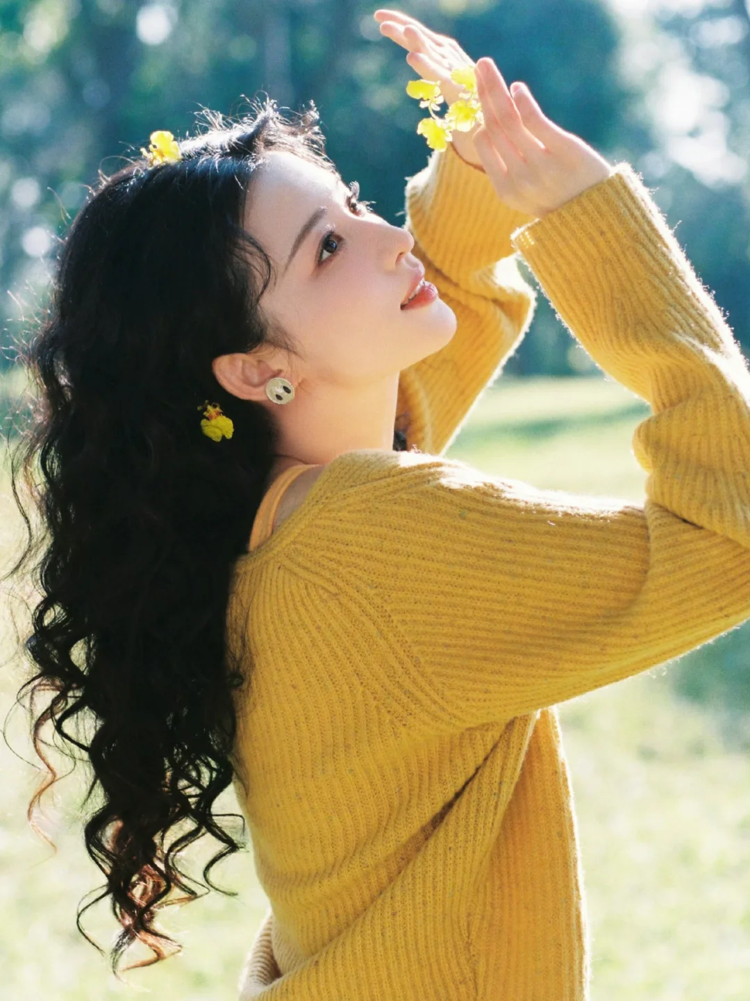 📷户外拍照参考 王楚然今年的生日写真还有一组外景写真,由摄影师苦树一掌镜。苦树一擅长文艺清新风格的胶片人像摄影,能够把普通的户外场景拍出治愈又明媚的氛围,就像这组照片。暖黄色毛衣将王楚然的明艳气质衬托得恰到好处,蓬松的羊毛卷发点缀着黄色小花,手中的花束又为画面增添了色彩层次,整体弥漫着慵懒松弛的法式田园氛围。而胶片的质感,又让画面有了细腻的颗粒感,温柔又治愈。这组照片无论是穿搭思路还是取景、姿势、色调方面,都很适合作为普通人户外拍照的参考模板。