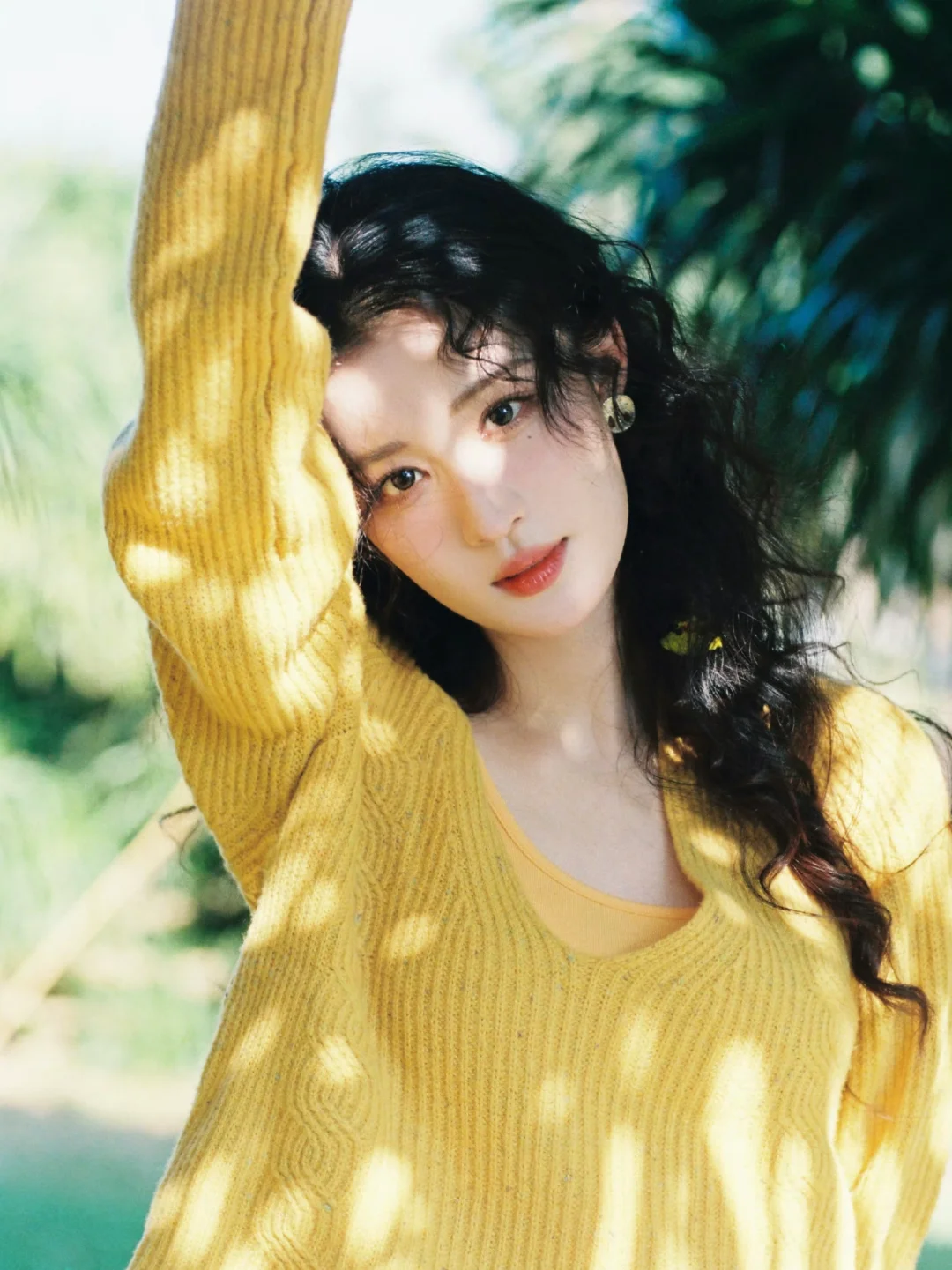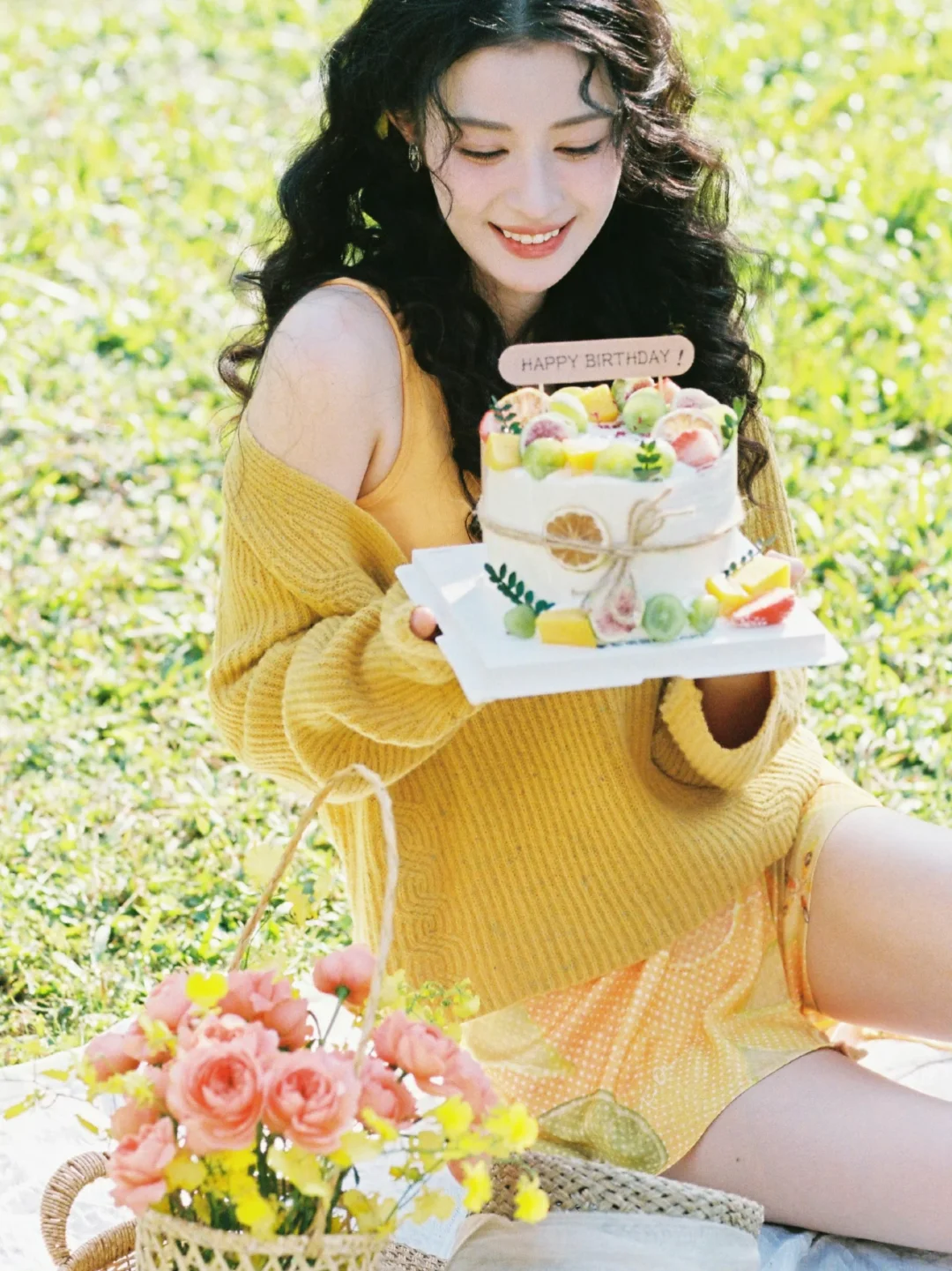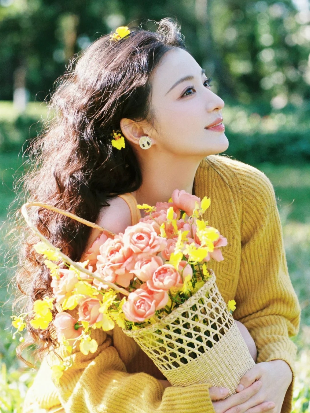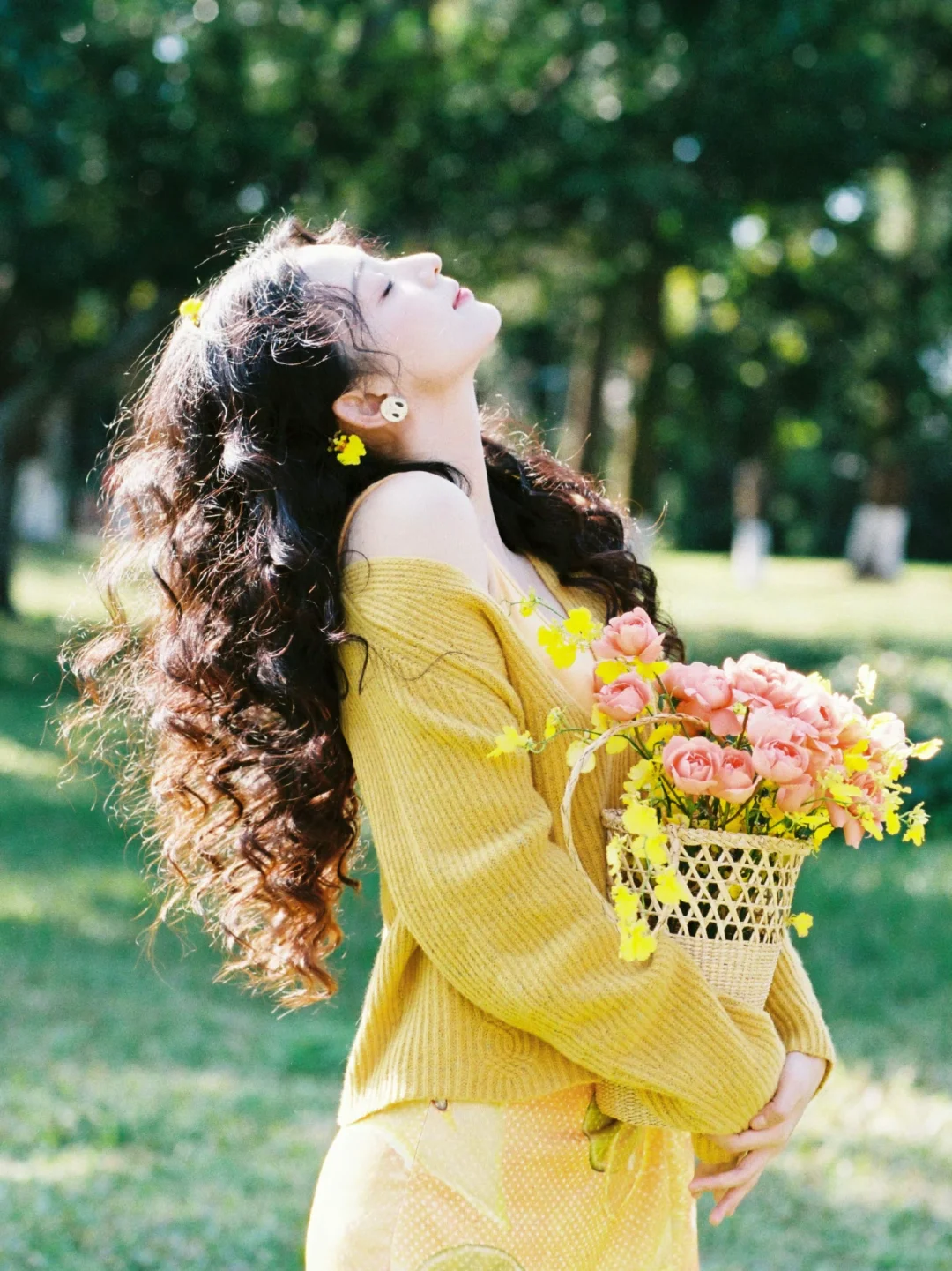📷户外拍照参考 王楚然今年的生日写真还有一组外景写真,由摄影师苦树一掌镜。苦树一擅长文艺清新风格的胶片人像摄影,能够把普通的户外场景拍出治愈又明媚的氛围,就像这组照片。暖黄色毛衣将王楚然的明艳气质衬托得恰到好处,蓬松的羊毛卷发点缀着黄色小花,手中的花束又为画面增添了色彩层次,整体弥漫着慵懒松弛的法式田园氛围。而胶片的质感,又让画面有了细腻的颗粒感,温柔又治愈。这组照片无论是穿搭思路还是取景、姿势、色调方面,都很适合作为普通人户外拍照的参考模板。
