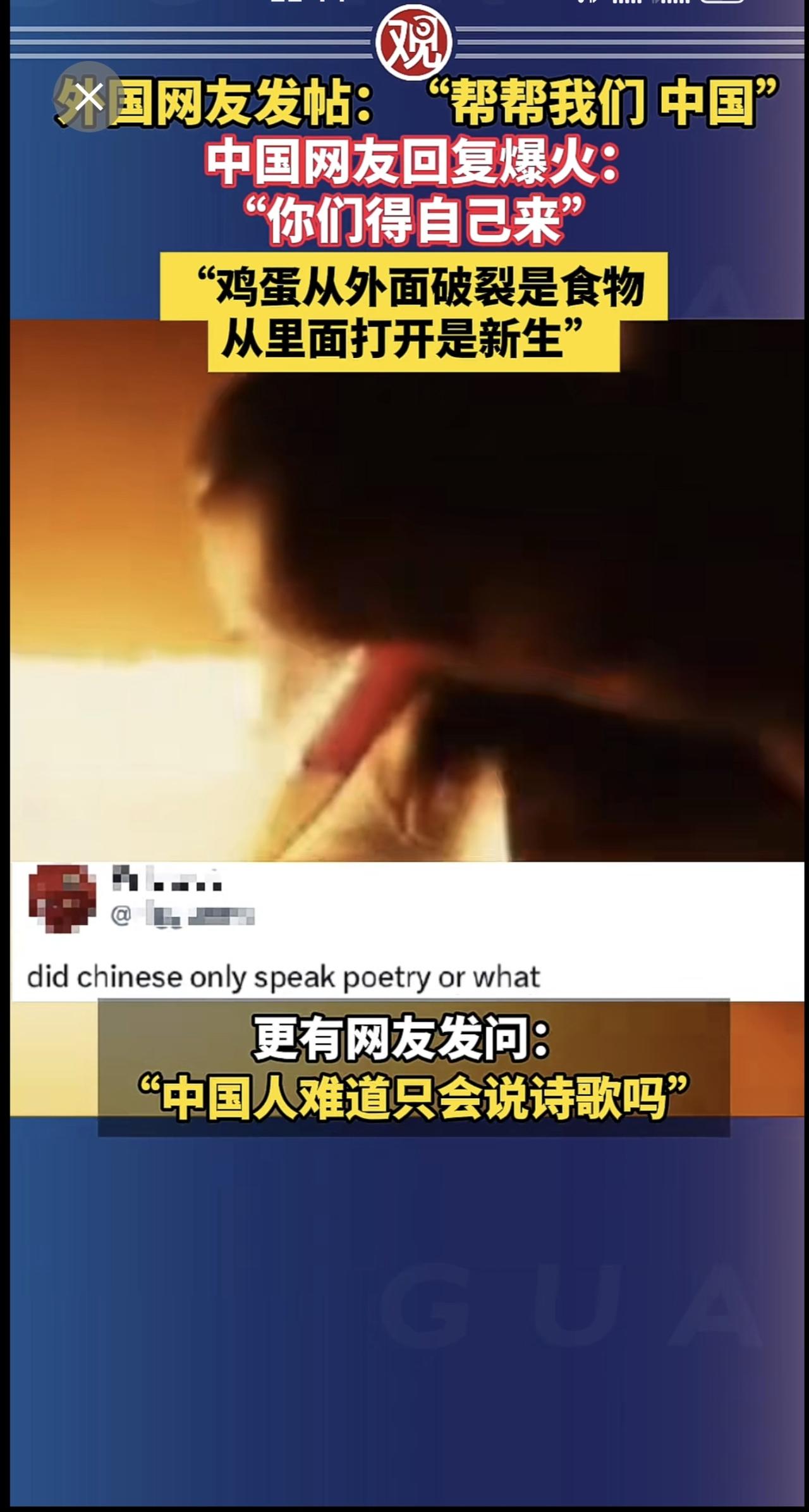 外国网友发帖:“帮帮我们,中国”,中国网友回复爆火:“你们得自己来”,“鸡蛋从外