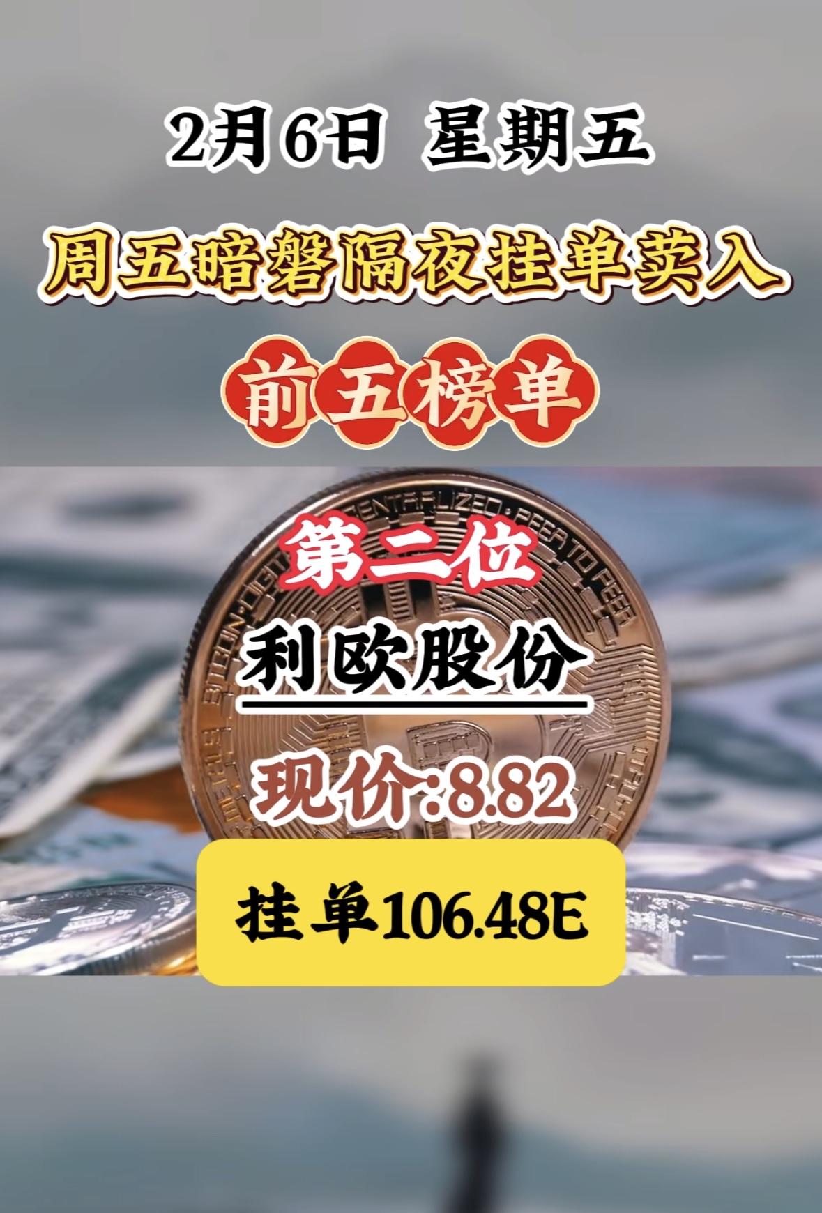 2月5日暗盘隔夜挂单排行,白银有色现价11.36,挂单107.94亿!利欧股