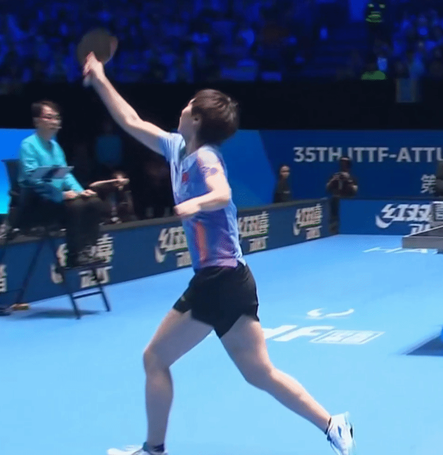海口亚洲杯小组赛第二轮比赛现场,王曼昱展现远台接球旋转跳跃高难度回球! 曼昱这把远台秀手感,打的非常漂亮,极具观赏性。关键是还真上台了! 喜欢看曼昱打球的球迷都非常喜欢曼昱打球的观赏性。胳膊长腿长身材好,护台面积大,可以防到对方崩溃。