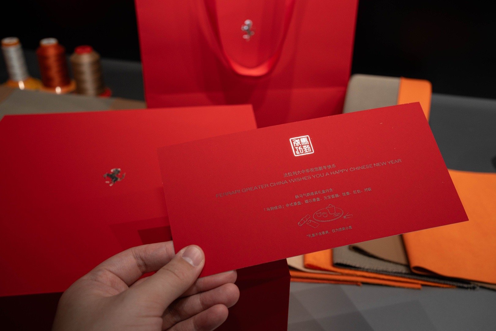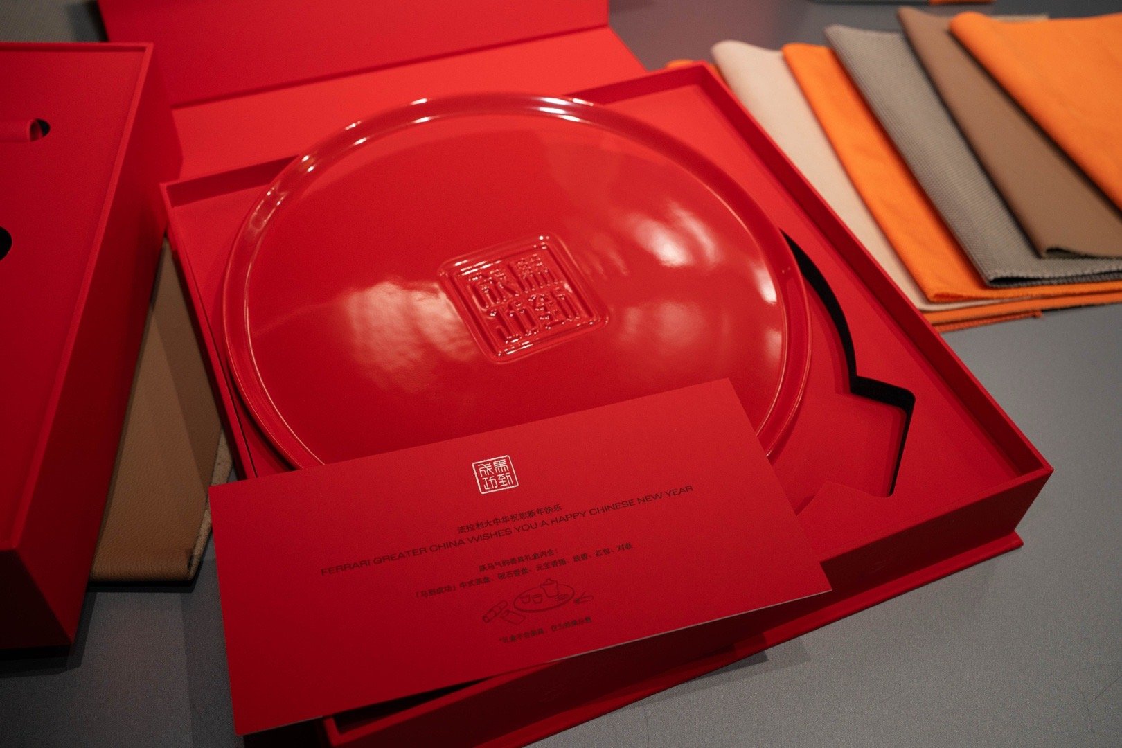 开箱一下 法拉利车主的新年礼盒大箱子质感满满开箱要慢点 里面的盘子比较重 马到成功的寓意非常好 这红包我都舍不得送人了法拉利车汽车