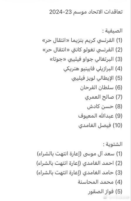吉达国民在 2023-2024 赛季共签约15名球员其中8名外援7名本土球员在 2024-2025 赛季共签约5名球员其中4名外援1名本土球员在 2025-2026 赛季共签约8名球员其中4名外援4名本土球员