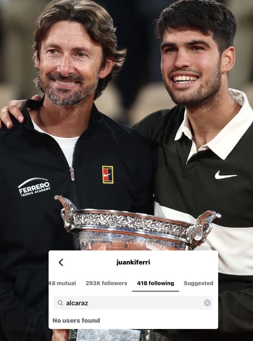 是纯business的行为吗?费雷罗取关了阿尔卡拉斯以及团队的大部分人。唯一还保