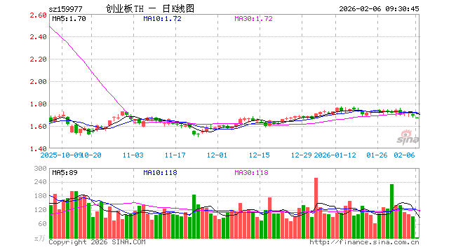 2月6日,创业板ETF天弘(159977)开盘跌1.00%,报1.675元。创业板ETF天弘(159977)重仓股方面,宁德时代开盘跌1.00%,中际旭创跌2.47%,新易盛跌1.81%,东方财富跌0.65%,阳光电源跌1.37%,胜宏科技跌1.24%,汇川技术跌0.93%,迈瑞医疗跌0.11%,温氏股份跌0.63%,天孚通信涨0.68%。