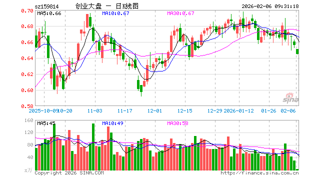 2月6日,创业大盘ETF西部利得(159814)开盘跌0.76%,报0.651元。创业大盘ETF西部利得(159814)重仓股方面,中际旭创开盘跌2.47%,宁德时代跌1.00%,新易盛跌1.81%,东方财富跌0.65%,阳光电源跌1.37%,胜宏科技跌1.24%,汇川技术跌0.93%,迈瑞医疗跌0.11%,天孚通信涨0.68%,亿纬锂能跌0.99%。