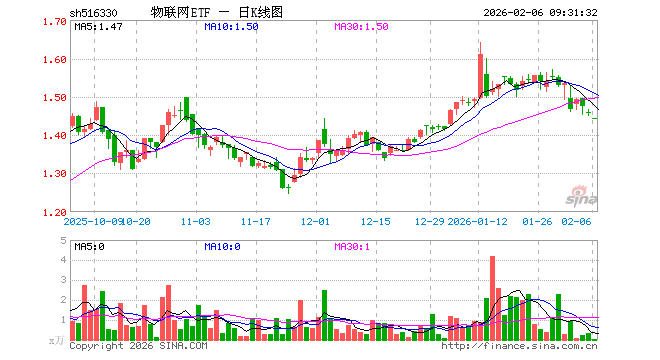 2月6日,物联网ETF(516330)开盘跌0.96%,报1.443元。物联网ETF(516330)重仓股方面,中际旭创开盘跌2.47%,立讯精密跌0.64%,汇川技术跌0.93%,兆易创新跌2.43%,美的集团跌0.02%,中兴通讯跌0.79%,科大讯飞跌0.90%,海康威视跌0.62%,豪威集团跌0.88%,海尔智家跌0.11%。
