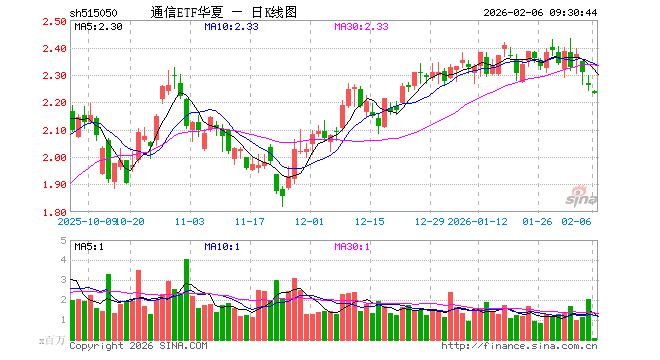 2月6日,通信ETF华夏(515050)开盘跌1.06%,报2.239元。通信ETF华夏(515050)重仓股方面,中际旭创开盘跌2.47%,新易盛跌1.81%,立讯精密跌0.64%,工业富联跌1.63%,兆易创新跌2.43%,中兴通讯跌0.79%,东山精密跌3.49%,沪电股份跌1.38%,天孚通信涨0.68%,生益科技跌1.13%。