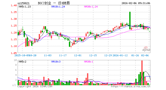 2月6日,创业板ETF中银证券(159821)开盘跌1.23%,报1.208元。创业板ETF中银证券(159821)重仓股方面,宁德时代开盘跌1.00%,中际旭创跌2.47%,新易盛跌1.81%,东方财富跌0.65%,阳光电源跌1.37%,胜宏科技跌1.24%,汇川技术跌0.93%,迈瑞医疗跌0.11%,温氏股份跌0.63%,天孚通信涨0.68%。