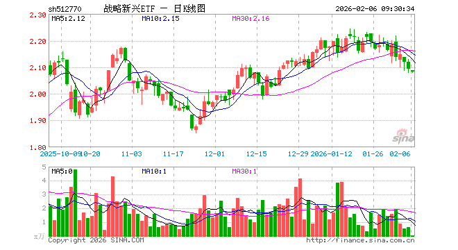 2月6日,战略新兴ETF(512770)开盘跌0.19%,报2.088元。战略新兴ETF(512770)重仓股方面,中际旭创开盘跌2.47%,新易盛跌1.81%,东方财富跌0.65%,寒武纪跌1.49%,立讯精密跌0.64%,阳光电源跌1.37%,胜宏科技跌1.24%,海光信息跌1.00%,恒瑞医药跌0.72%,药明康德跌0.75%。