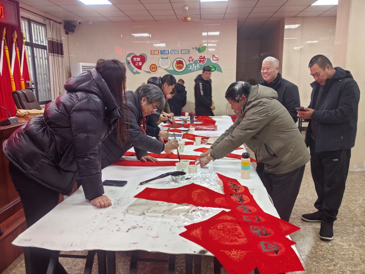 一张张红纸,承载的是传统文化的根脉;一笔笔浓墨,传递的是民进人的温情。活动现场,红纸铺案、墨香四溢,书画家们挥毫泼墨,笔走龙蛇间,一幅幅春联饱含“国泰民安”的家国情怀,一个个“福”字承载“家和业兴”的美好期盼。红彤彤的祝福映衬着村民们淳朴的笑容,一句句感谢、一声声期盼,这个冬日被浓浓的年味与墨香包裹。