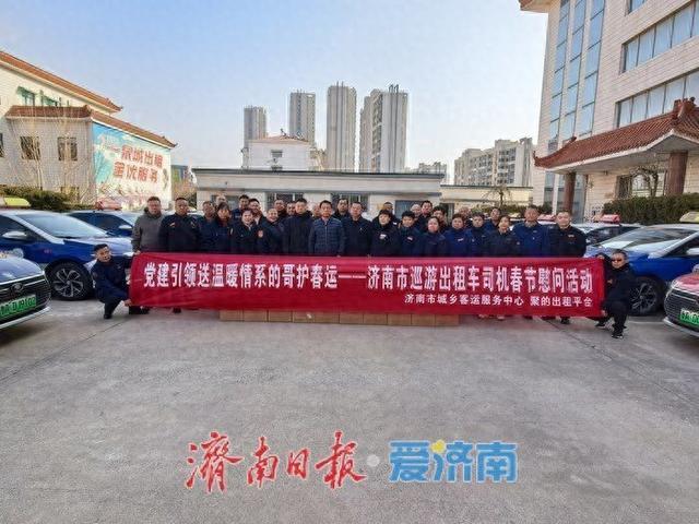 2月6日,济南市城乡客运服务中心联合爱心企业聚的出租在济南市出租车(网约车)党群服务中心开展“党建引领送温暖情系的哥护春运”春节慰问活动,为30名党员示范司机和家庭困难司机发放慰问品,并送上节日的祝福。