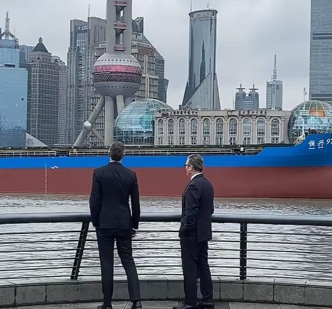 距离李鸿章访英,已经过去130年了。斯塔默站在外滩,对上海高楼大厦感慨万千!18