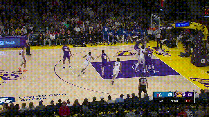 湖人超级球星詹姆斯真是太不爱惜自己的身体了!在今天湖人主场迎战76人的焦点战中,当时比赛进行到了第二节的九分多钟,詹姆斯在一次快攻反击中接队友范德比尔特的传球快速运球到前场,只见詹姆斯犹如推土机一般顶着防守人持球强杀篮下完成了一记石破天惊的单臂滑翔劈扣。 虽然詹姆斯的这记滑翔暴扣极其的精彩,但是毕竟詹姆斯已经41岁了,他不能再这样不爱惜自己的身体了。