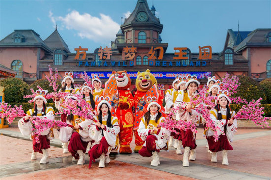 郑州方特欢乐世界以“方特潮新年”为主题,打造沉浸式新春潮玩场景,成为年轻人的打卡欢聚目的地。园区内,高颜值NPC强阵容集结,涵盖古风、潮酷等多元风格,与游客近距离互动、花式拜年。活动期间,百场沉浸式新春演出轮番上演:既有列入国家级非物质文化遗产名录的潮汕英歌舞,以刚劲雄浑的舞姿尽显民俗魅力;还有新年狂欢派对、新春童话大巡游等潮趣演艺,通过动感旋律搭配喜庆装扮,将新春欢乐氛围拉满。