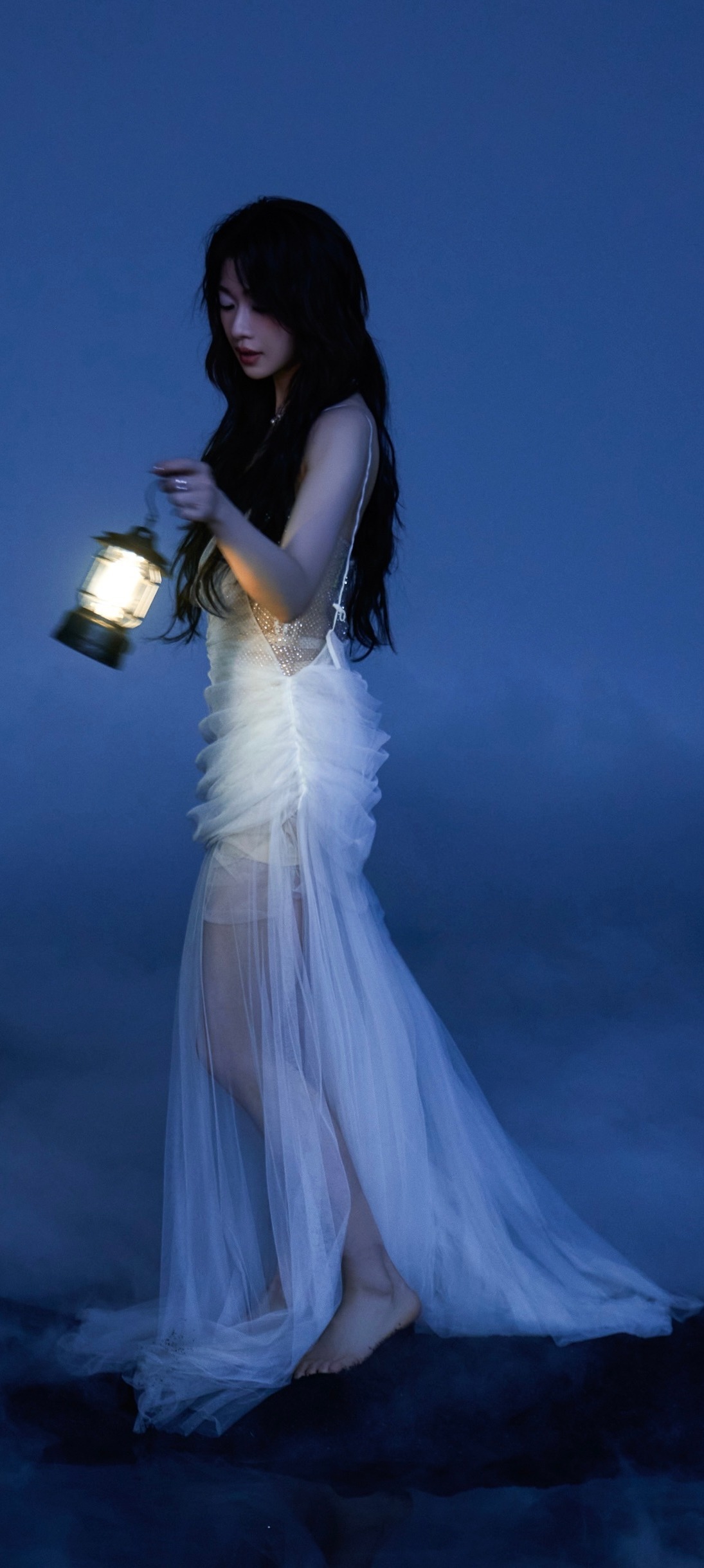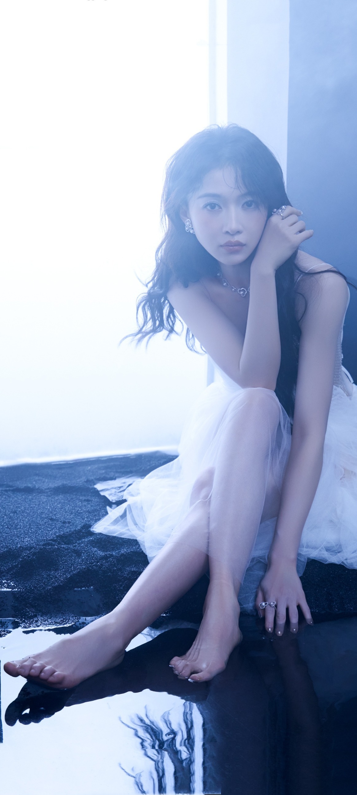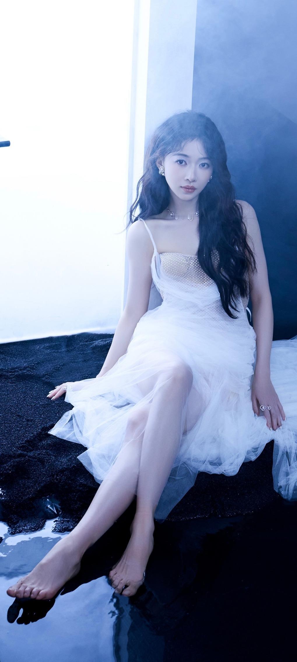 吴谨言最新生日营业照,吊带白纱裙光脚美腿,好仙好美。吴谨言