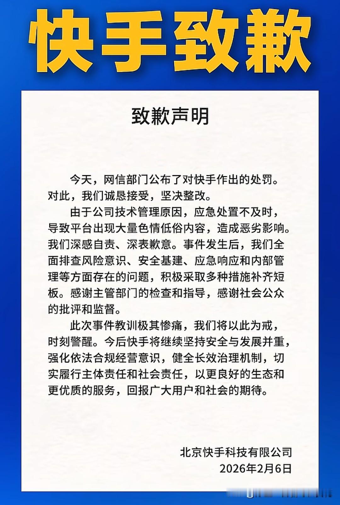 快手这波被罚1.191亿元,真是把“顶风作案”演绎得明明白白,全网看了都直呼“罚得解气”!网信部门一纸罚单砸下来,可不是凭空找茬,而是实打实地戳中了平台的“三宗罪”:安全保护义务形同虚设、系统漏洞长期不补、色情低俗直播泛滥成灾,任由违法信息扩散,影响恶劣到让人无法容忍。 最让人震惊的是去年12月那场“至暗之夜”,上万僵尸账号批量涌入快手直播间,满屏都是露骨表演、血腥内容,甚至有未成年人不慎刷到,家长们投诉无门。可平台当时甩锅“遭黑灰产攻击”,直到监管部门调查才真相大白——哪是什么外部攻击,分明是自己的审核机制形同虚设,应急响应慢得离谱,违规内容扩散十分钟后才迟迟处置,这根本就是“摆烂式运营”。 更讽刺的是,快手并非初犯。早年间就因低俗内容被约谈整改,45天前刚领过市场监管总局的2600多万罚单,转头就又在内容安全上掉了链子。作为日活超4亿的头部平台,季度营收几百亿,难道差那点升级安全系统、扩充审核团队的钱?说白了,还是把流量看得比底线重,算法一个劲往“刺激性内容”倾斜,把“老铁”的信任当成收割流量的工具。 面对1.191亿罚款,快手倒是秒发声明“诚恳接受、坚决整改”,可网友们根本不买账。大家翻出旧账质疑:“之前的整改报告怕不是用隐形墨水写的?”还有人算过账,这笔罚款仅占平台预估年营收的0.92%,要是不真刀真枪补漏洞、严审核,下次可能就不是“教训费”这么简单了。 说到底,网络空间从来不是法外之地,流量也不是免死金牌。监管部门这记重拳,既是给快手敲警钟,也是给所有平台立规矩:别再想着靠低俗博眼球、靠漏洞钻空子,履行主体责任、守住法律底线才是长久之道。要是连用户的安全和体验都不顾,再大的流量盘子也迟早塌掉,大家觉得快手这次能真的整改到位吗?