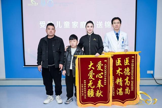 仪式现场温情涌动,救助患儿苏珂豪的家长专程送来锦旗,由基金会理事王佩滢与西京医院胡大海教授共同接收,锦旗上的字句既承载着受助家庭的感恩,更印证了“医慈合作”的实效。