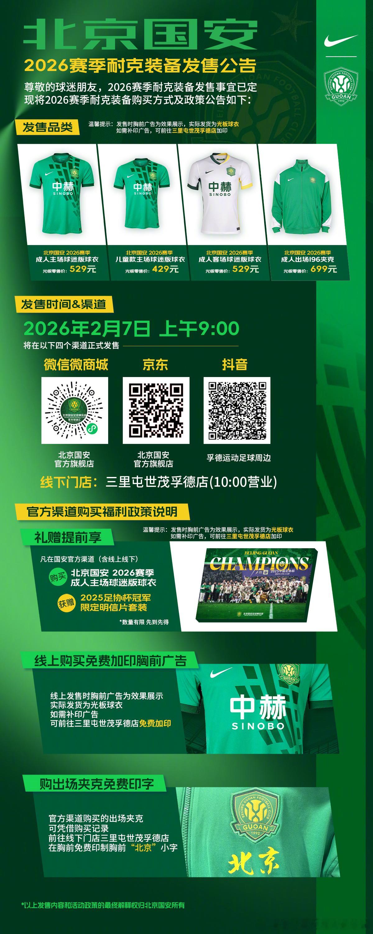 2026 赛季耐克全新装备上线💚,工体光影织入战袍,新赛季并肩向前! 网页链接
