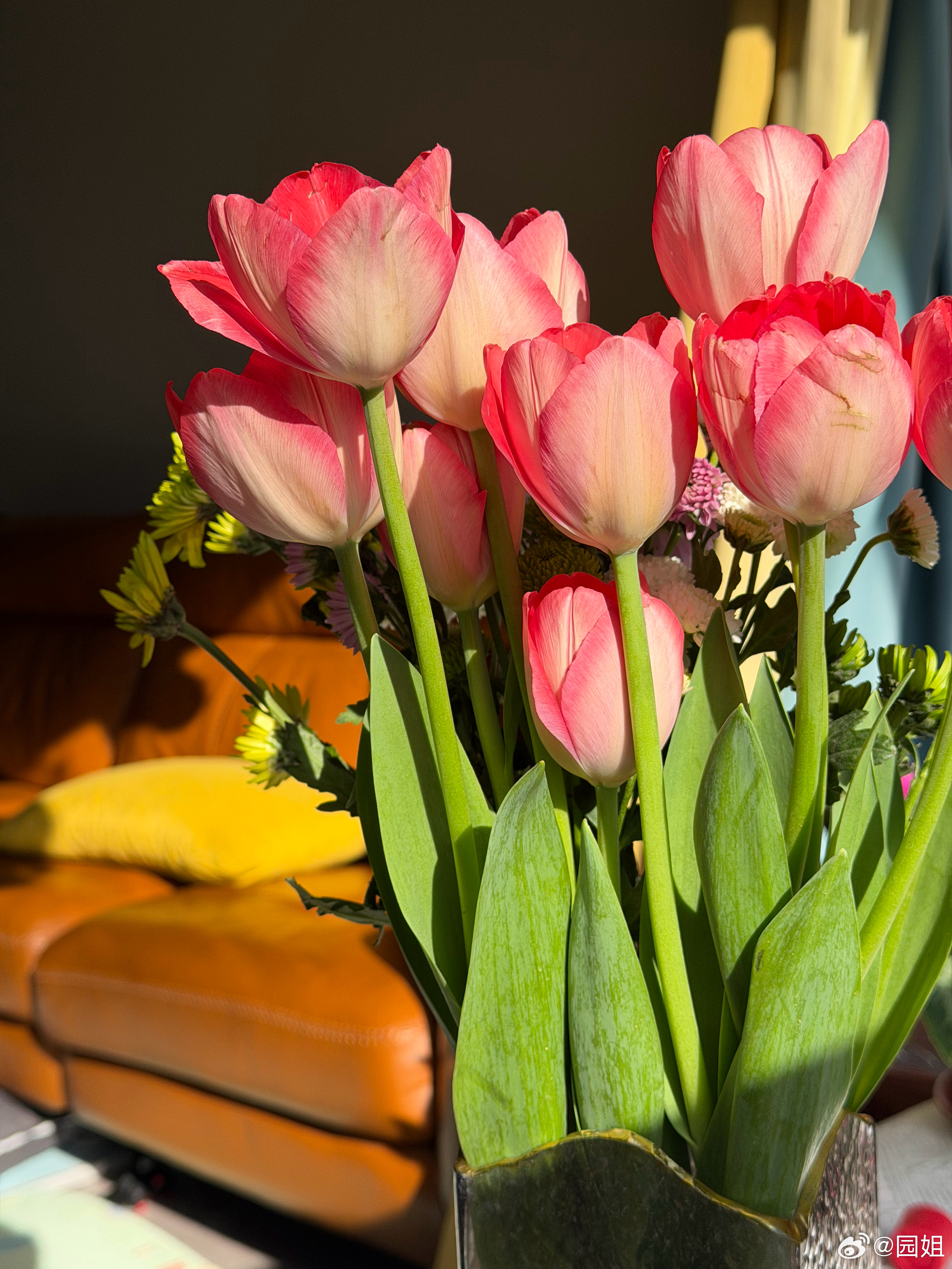 昨天买的郁金香开了,是不是挺漂亮的?