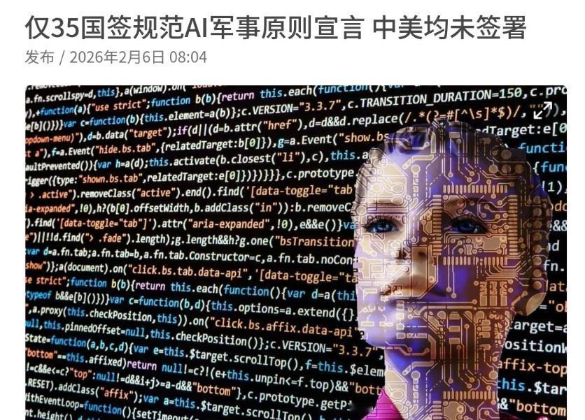 中美两国都不参与!这一次中美倒是难得的有默契!2月6日,根据新加坡联合早报报道,85个国家参加了在西班牙拉科鲁尼亚举行的“军事领域负责任使用AI”峰会,结果仅有35与会国家签署一项关于AI的20项原则承诺。外媒称,两大军事强国,美国和中国都未在联合宣言上签字。     西班牙拉科鲁尼亚的冬天总是带着大西洋特有的潮湿与寒意,站在2026年1月的时间节点回望,去年2月6日在那座海滨城市上演的一幕,依然是全球军事史上最耐人寻味的“静默时刻”。   彼时85个国家的代表挤满了会场,镁光灯闪烁,空气中弥漫着一种创造历史的错觉,主办方精心准备了一份关于“军事领域负责任使用AI”的20项原则承诺,试图为即将到来的机器战争时代套上第一副缰绳。   然而当闭幕式的喧嚣散去,留在那张标志性签名墙上的名字,只有稀稀拉拉的35个,超过六成的参会国代表,在最后时刻收起了钢笔,双手插兜,转身离去。   这其中,最刺眼的两个空白栏,属于美国和中国,这一幕彻底撕碎了西方世界试图营造的“温情脉脉”,在那一刻,所谓的“国际宣言”瞬间褪去了光环,还原为一张缺乏核心约束力的废纸。   道理太硬了:当占据全球AI芯片、大模型和顶刊份额半壁江山的中美两国都不点头,这张桌子上剩下的所有筹码加起来,甚至不够这一轮发牌的底注。   很多人把这次拒签解读为中美之间的某种“默契”,这简直是天大的误会。在这两个空白签名的背后,实际上是两套完全背道而驰、甚至可以说是南辕北辙的战略逻辑。   看看美国,就在峰会前后,重返白宫的特朗普政府已经把桌子掀了,华盛顿甚至懒得掩饰那股赤裸裸的野心,“赢得AI竞赛”,这不仅仅是一句口号,更是五角大楼正在加速运转的齿轮。   美军正在疯狂地将硅谷的商业技术转化为战场杀器,谷歌的Gemini模型被集成进军用平台的速度快得惊人,对于美国而言,此时此刻签署任何一份“负责任”的宣言,无异于在拳击赛开场前就把自己的一只手绑在背后。   他们拒绝签字,不是因为原则太严苛,而是因为他们需要绝对的、不受限的“技术暴力”,为了保持霸权,美国必须保留那一块“不负责任”的灰色地带。   再把目光转向中国,在那次峰会上,中国外交部军控司副司长李驰江的话说得很明白:“以人为本”,但这四个字背后,是中国对于“谁来定义规则”这一根本问题的深刻质疑。   中国拒绝签字,不是反对治理,而是拒绝“被代表”,这份由西方小圈子炮制的20项原则,本质上是一份缺乏法律强制力的“软性政治承诺”,字里行间甚至暗藏着某种技术壁垒。   北京的逻辑很清晰:真正的规则必须来自于多边协商,必须是大家坐下来共商共建,而不是西方国家写好稿子,然后叫大家来排队签字,中国已经把AI治理纳入了“十五五”规划,这显示出一种完全不同的定力,我们有自己的节奏,绝不会为了一份充满西方价值观偏见的政治通稿而打乱步伐。   这一场拉科鲁尼亚的冷场,其实是西方集团“立法权”衰退的缩影,要是倒退几十年,在核技术或航天领域,西方国家确实可以靠着技术垄断,单方面制定规则,然后强迫全世界遵守。   但现在,时代变了,当2025年的数据显示中美两国已经垄断了AI技术的第一梯队时,西方试图复制“旧世界”霸权模式的企图,就像是一拳打在了棉花上。   那85个参会国中,有超过60%的国家选择拒签,这本身就是一个震耳欲聋的信号,全球南方国家不再盲目迷信西方的“价值观外交”,他们看得很清楚:没有硬实力支撑的规则,就是空中楼阁。   我们现在正站在一个危险的分岔路口,一条路,是西方继续固守单边主导的迷梦,导致全球规则碎片化,结果必然是各国为了自保,被迫卷入一场无序的AI军备竞赛,那将是一个没有红线、没有刹车、只有算法对抗算法的疯狂世界。   另一条路,是承认现实,承认这个世界的规则制定权已经不再垄断于少数人之手,承认只有把中美两国请回谈判桌,进行真正的、具有法律约束力的多边协商,才能搞出点真东西。   从这个角度看,去年2月6日中美的那两个空白签名,或许是近年来对人类历史最负责任的一次“不作为”。   真正的负责任,不是匆忙在一份原本就千疮百孔的宣言上签字画押,以此来粉饰太平,真正的负责任,是敢于让场面冷下来,逼迫所有利益相关方直面那个最残酷的现实:在这个智能化的火药桶被点燃之前,我们必须构建一套真正公平、且所有人都不敢轻易打破的钢铁规则。   在此之前,不签字,就是最好的表态。