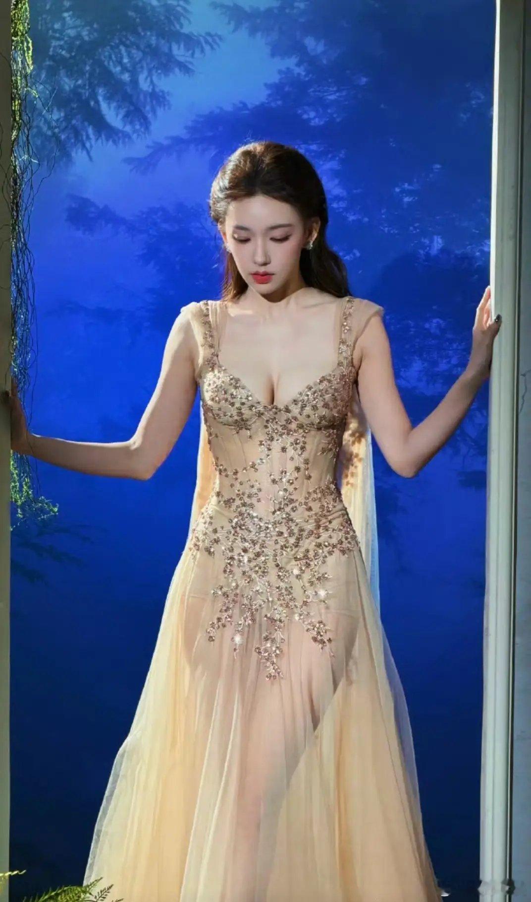这条裙子纱纱的,紧身的,很显白,也很显身材,给人的感觉特别高贵,还特别有质感。