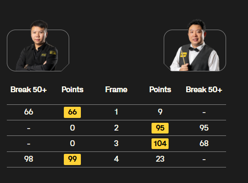 斯诺克世界大奖赛半决赛:张安达半场2-2周跃龙