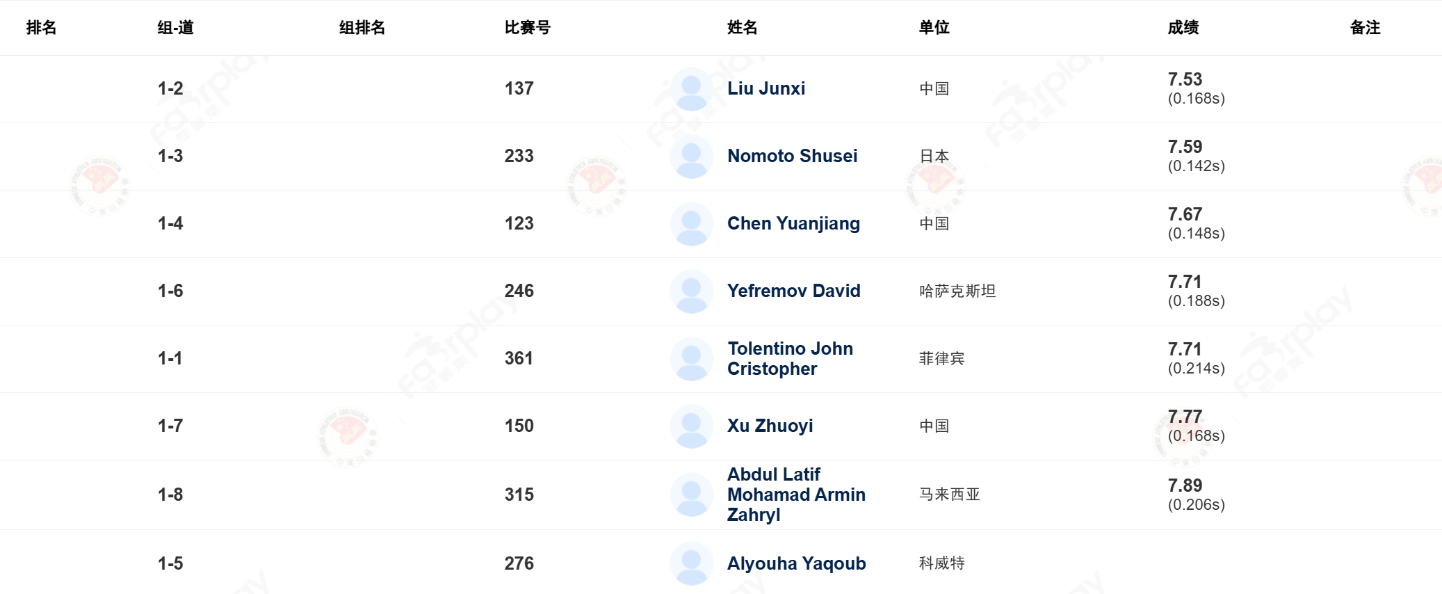 其他中国选手方面,陈圆将以7秒67的成绩摘得一枚铜牌,徐卓一跑出7秒77位列第6.