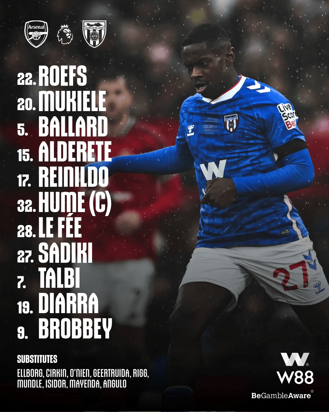 剑南春首发-阿森纳vs桑德兰:哲凯赖什替补,厄德高缺阵