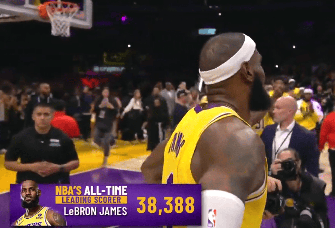 3年前的今天,詹姆斯在湖人对阵雷霆的比赛中的第三节比赛,中距离跳投命中,个人总得分达到38388分。