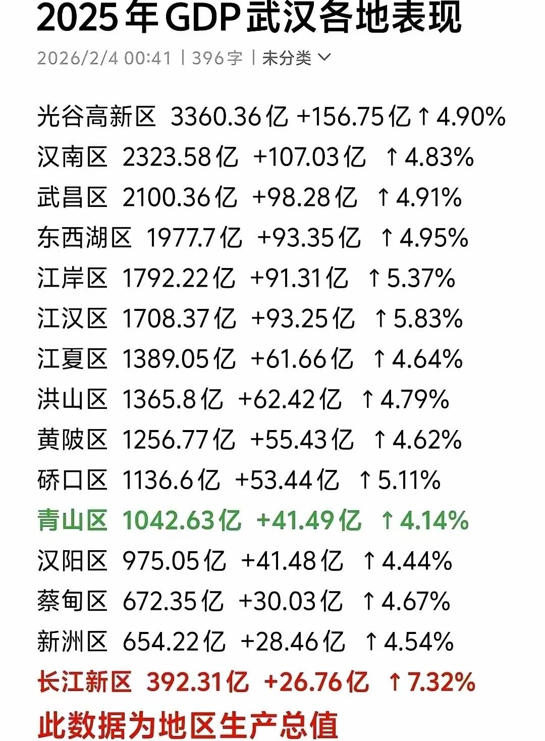 2025武汉哪个区最强。看看各区的生产总值,其实武汉分成15个区有点多了,分成10个区就够了。