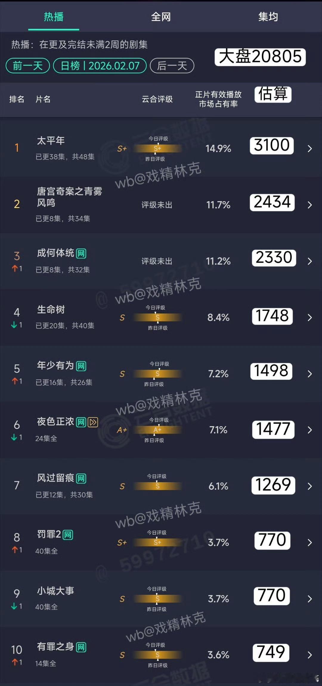 昨日云合、酷云唐宫奇案之青雾风鸣云合11.7%酷云10.27%成何体统次日云合1