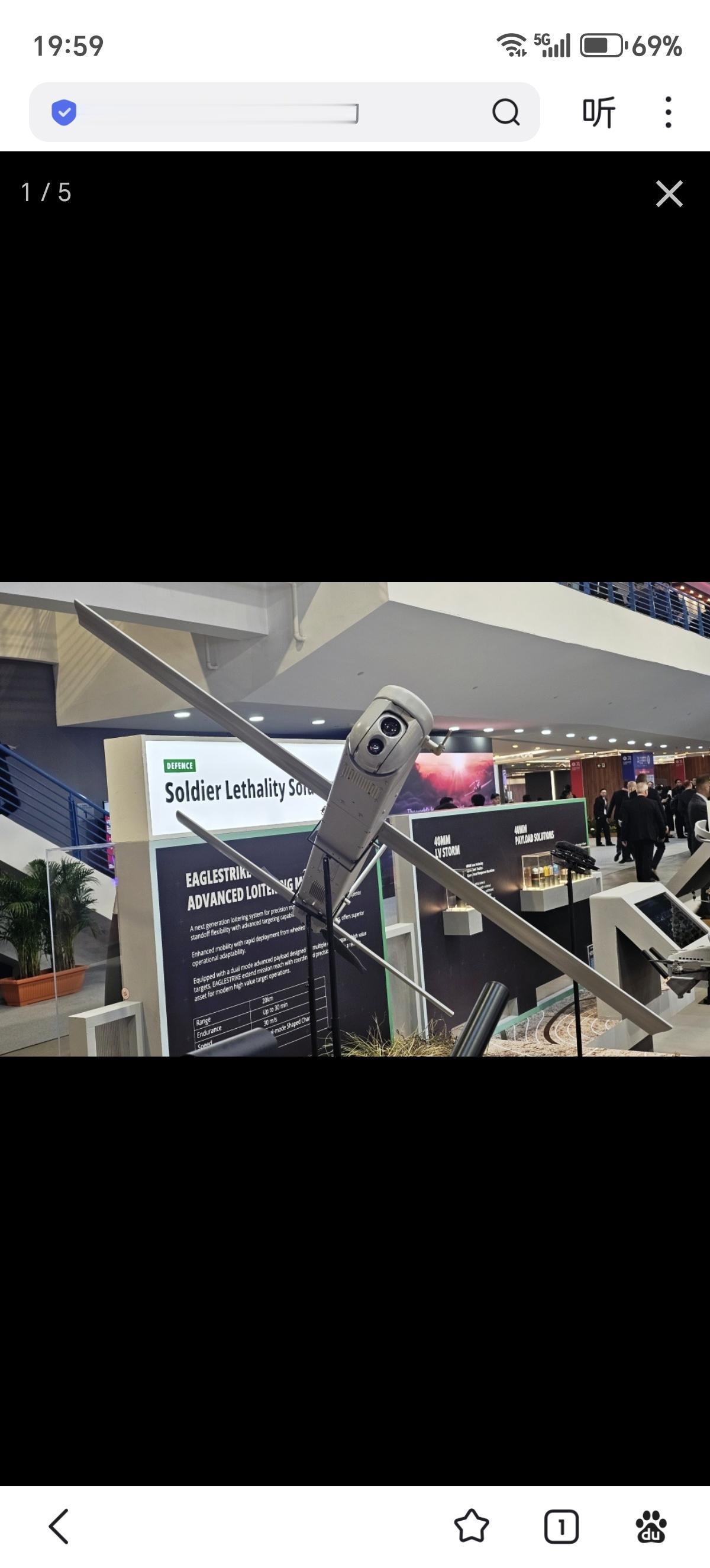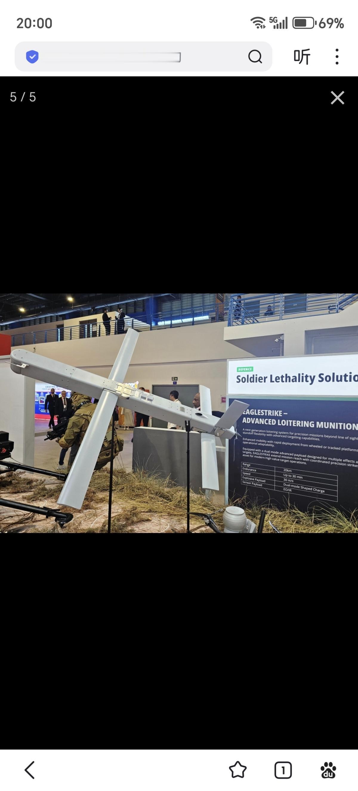 在新加坡航展2026上,ST Engineering公司推出了其新型“鹰击”(EagleStrike)巡飞弹。该巡飞弹是一种车载发射的超视距精确打击弹药。“鹰击”巡飞弹最大射程为20公里,续航时间可达30分钟,最大飞行速度约为108公里/小时(30米/秒)。配备了一个约200克重的双模聚能装药战斗部,对轻装甲目标具备有效杀伤力,有效载荷可根据任务需求进行定制。该弹药搭载了光电/红外传感器,通过超视距数据链进行控制,操作员可在隐蔽位置对目标进行识别、跟踪和精确打击,并支持在任务中重新定位或中止攻击。目前,“鹰击”巡飞弹的技术成熟度已达到7级,自2025年起已进入飞行试验阶段。ST Engineering公司表示,该系统已接近生产状态,目标是在2027年初实现初步生产。该公司还正在探索将其用于协同蜂群作战的概念。
