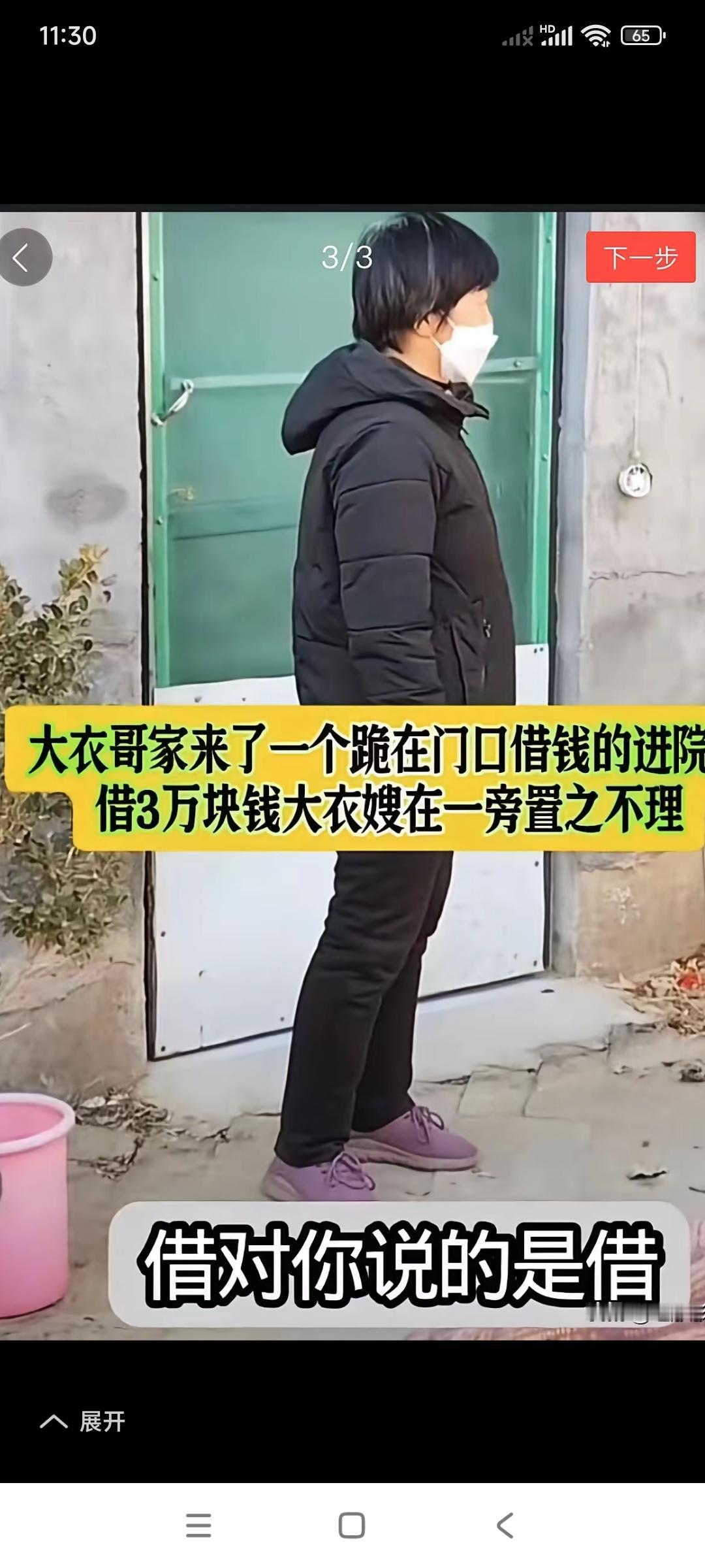 又有一个上大衣嫂家,跟大衣哥借3万元钱。 大衣嫂看见这个人没搭理他。 要我说