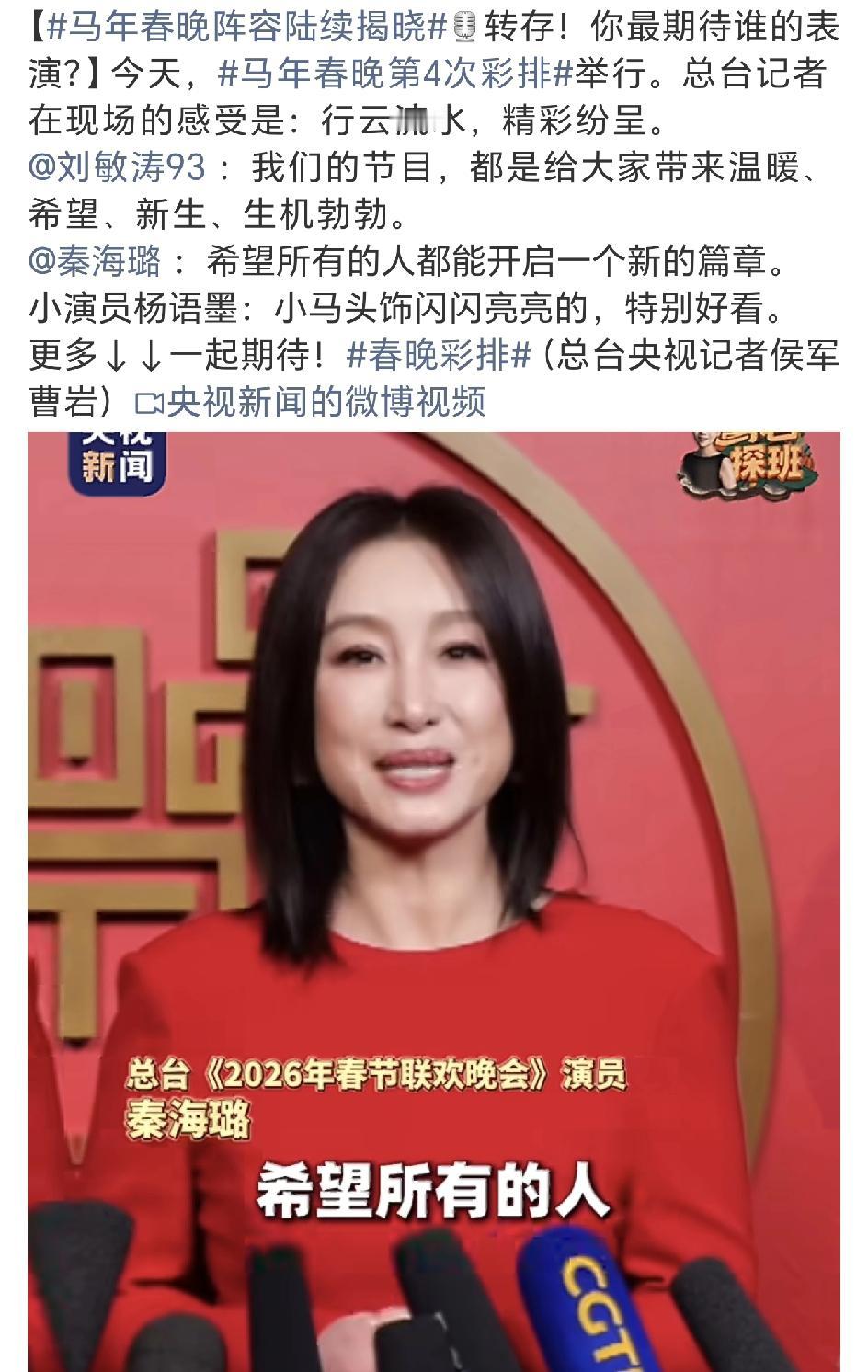 春晚已经进行了四次联排, 有你喜欢的节目吗? 今天到场的歌手居多, 这个Allen,刚看到第一眼,我还以为是苏醒[笑哭]! 第四次彩排为什么没有张杰了呢? 李健来彩排了,目前还缺一位女性大咖,不知道最后谁会出现! 邓超这个抽象鼻祖又要去春晚了,演员里唱歌最好的,也是最搞笑的,其实他还可以演小品类的节目! 小朋友们也都上场了,这个小马的头饰还蛮好看的! 春晚 李健