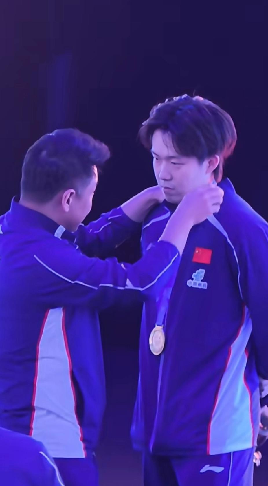 这一拍,比金牌还戳心!王皓对大头的爱藏不住了 家人们!谁懂啊!看到王皓教练这一举动,眼眶瞬间热了🔥 王楚钦夺冠后站在领奖台旁,王皓走过去双手紧紧扣住他的双肩,掌心贴在他脸颊旁轻轻摩挲,那眼神里的欣慰快溢出来了——像极了老父亲看着独苗儿子扛住全家希望考了第一,又骄傲又心疼的模样! 别忘了,这次亚洲杯男单赛场有多凶险!四强里就剩大头这一根国乒独苗,被日本、台北选手团团包围,每一步都走得如履薄冰。可他硬是咬碎压力,把金牌留在了中国🇨🇳 从青涩小将到如今的定海神针,王皓看着他一路摔打成长。这一拍,是教练对弟子的最高褒奖,更是父辈对孩子的温柔宠溺。这就是国乒最动人的传承啊!😭 2026年海口亚洲杯 王皓 王楚钦