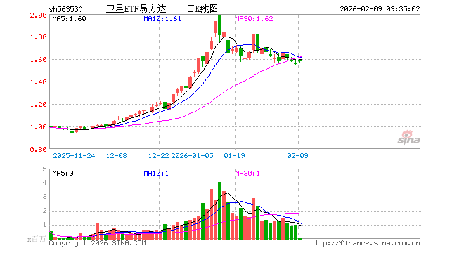 卫星ETF易方达(563530)业绩比较基准为中证卫星产业指数收益率,管理人为易方达基金管理有限公司,基金经理为张泽峰,成立(2025-11-05)以来回报为55.36%,近一个月回报为-1.63%。