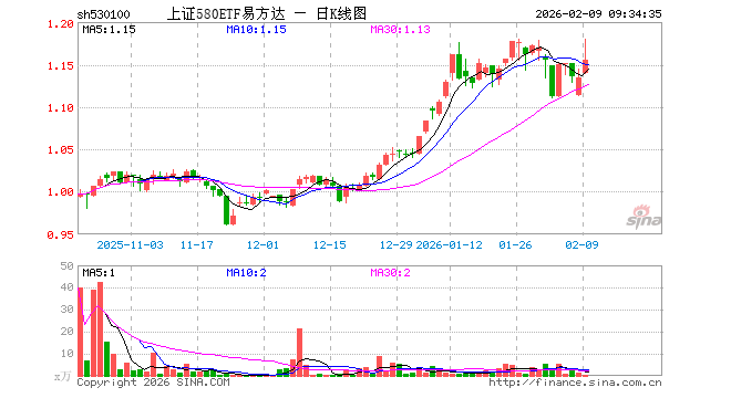 上证580ETF易方达(530100)业绩比较基准为上证580指数收益率,管理人为易方达基金管理有限公司,基金经理为李博扬,成立(2025-10-10)以来回报为13.32%,近一个月回报为4.55%。