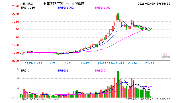 卫星ETF广发(512630)业绩比较基准为中证卫星产业指数收益率,管理人为广发基金管理有限公司,基金经理为吕鑫,成立(2025-10-13)以来回报为56.24%,近一个月回报为-1.68%。